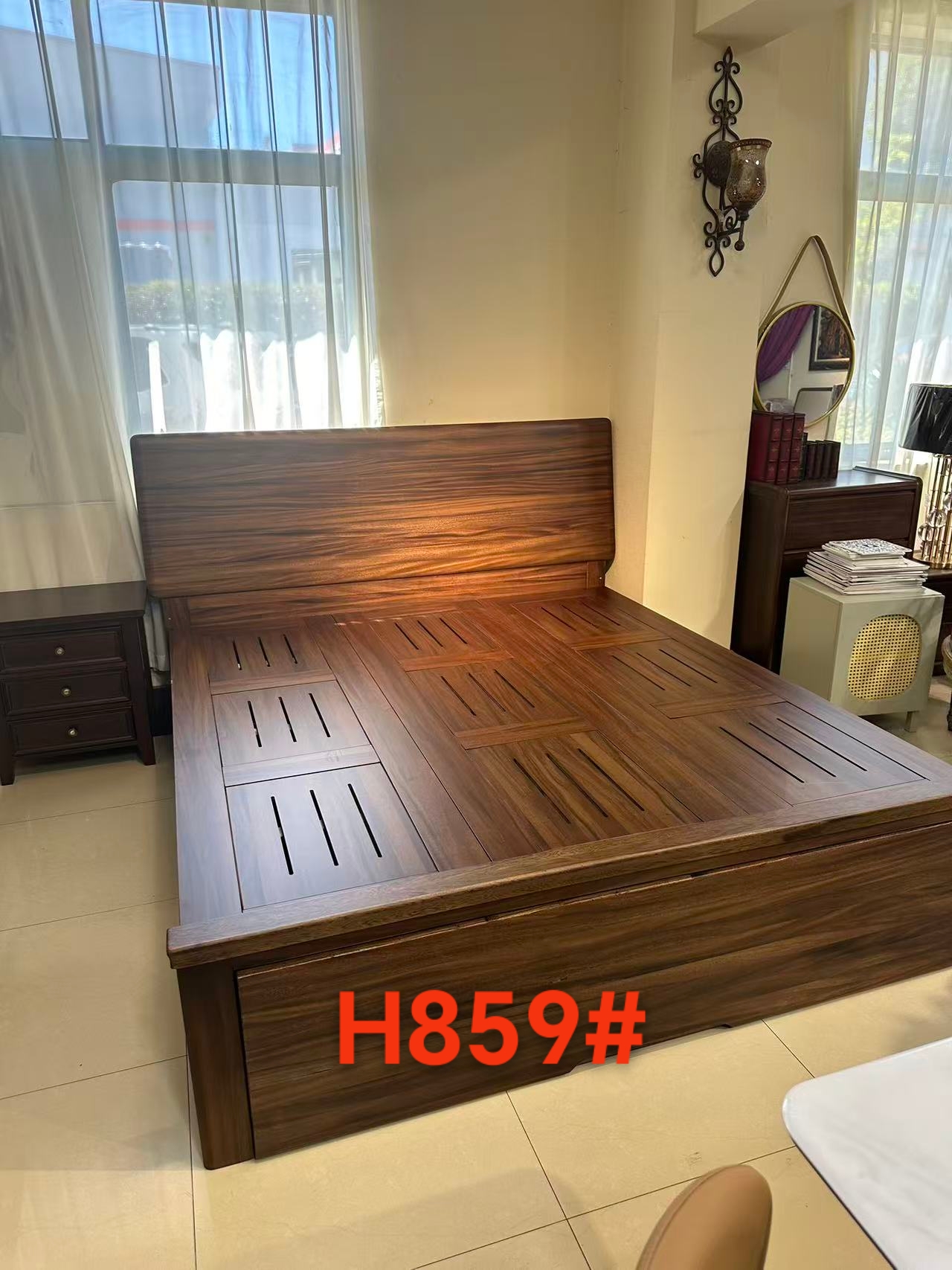 屿光-H859#南美黑胡桃实木床