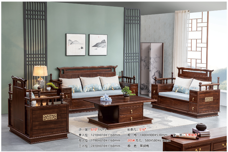 星澜木作-609#1+2+3+大小茶几(五件套)