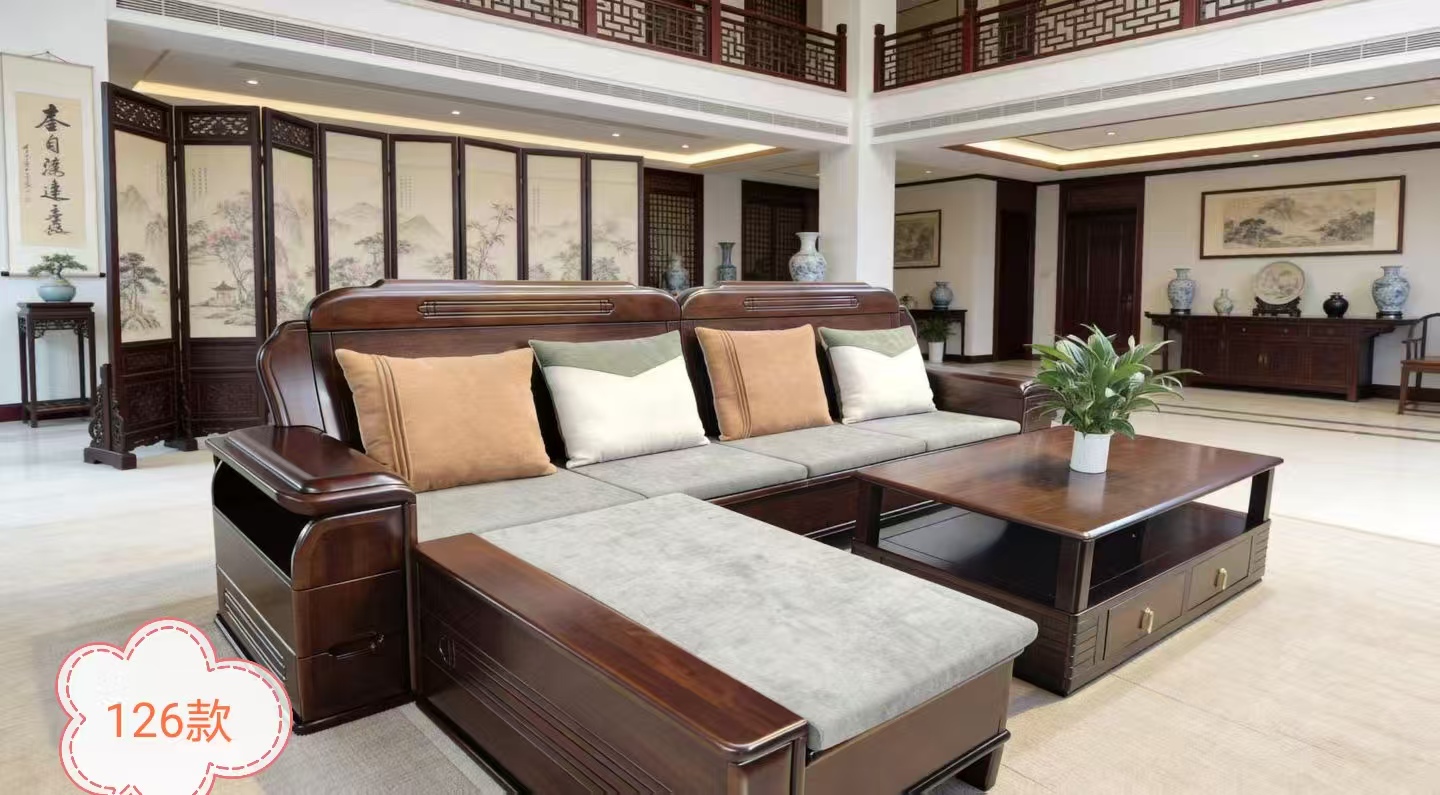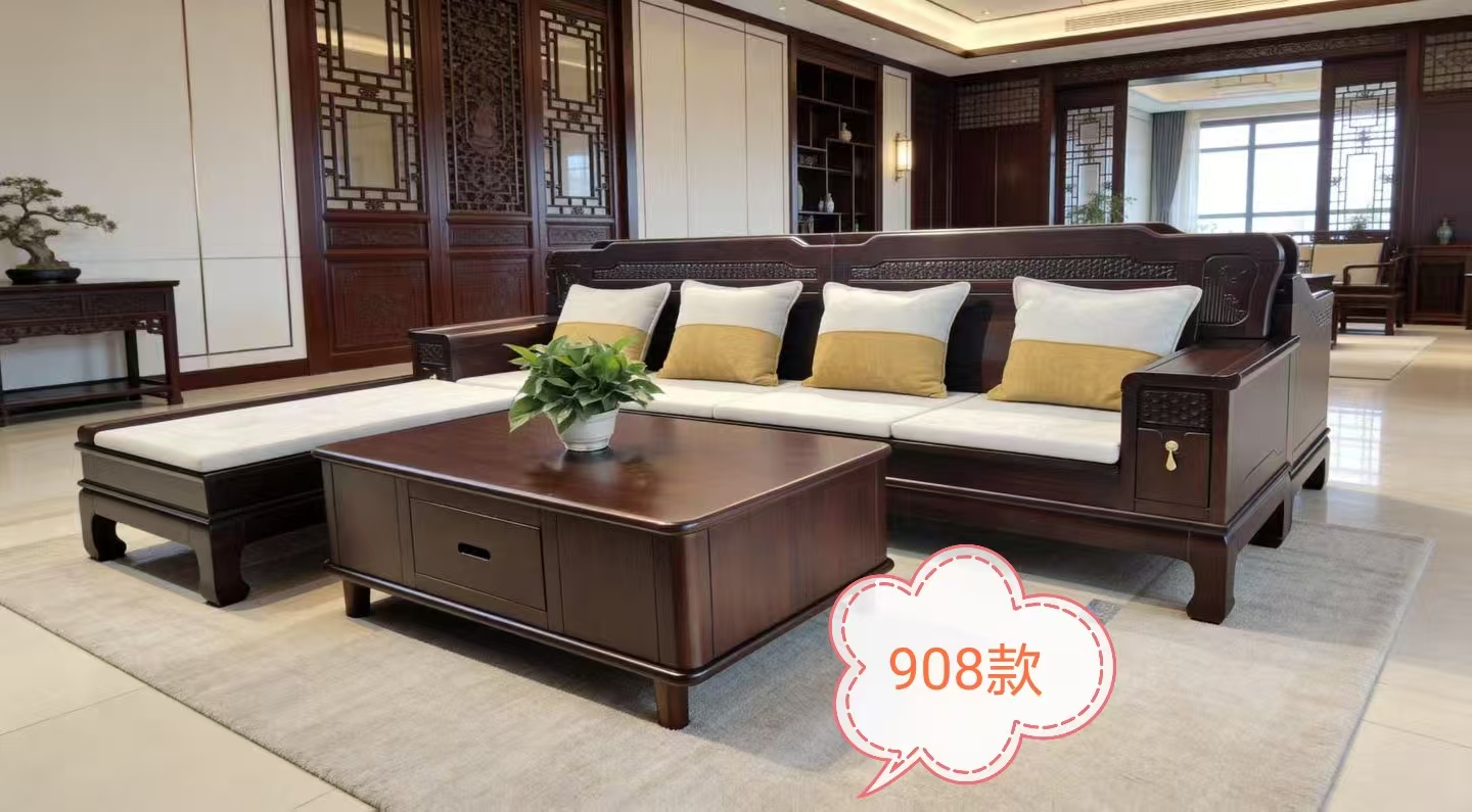 洲里沙发-仿古中式胡桃木沙发