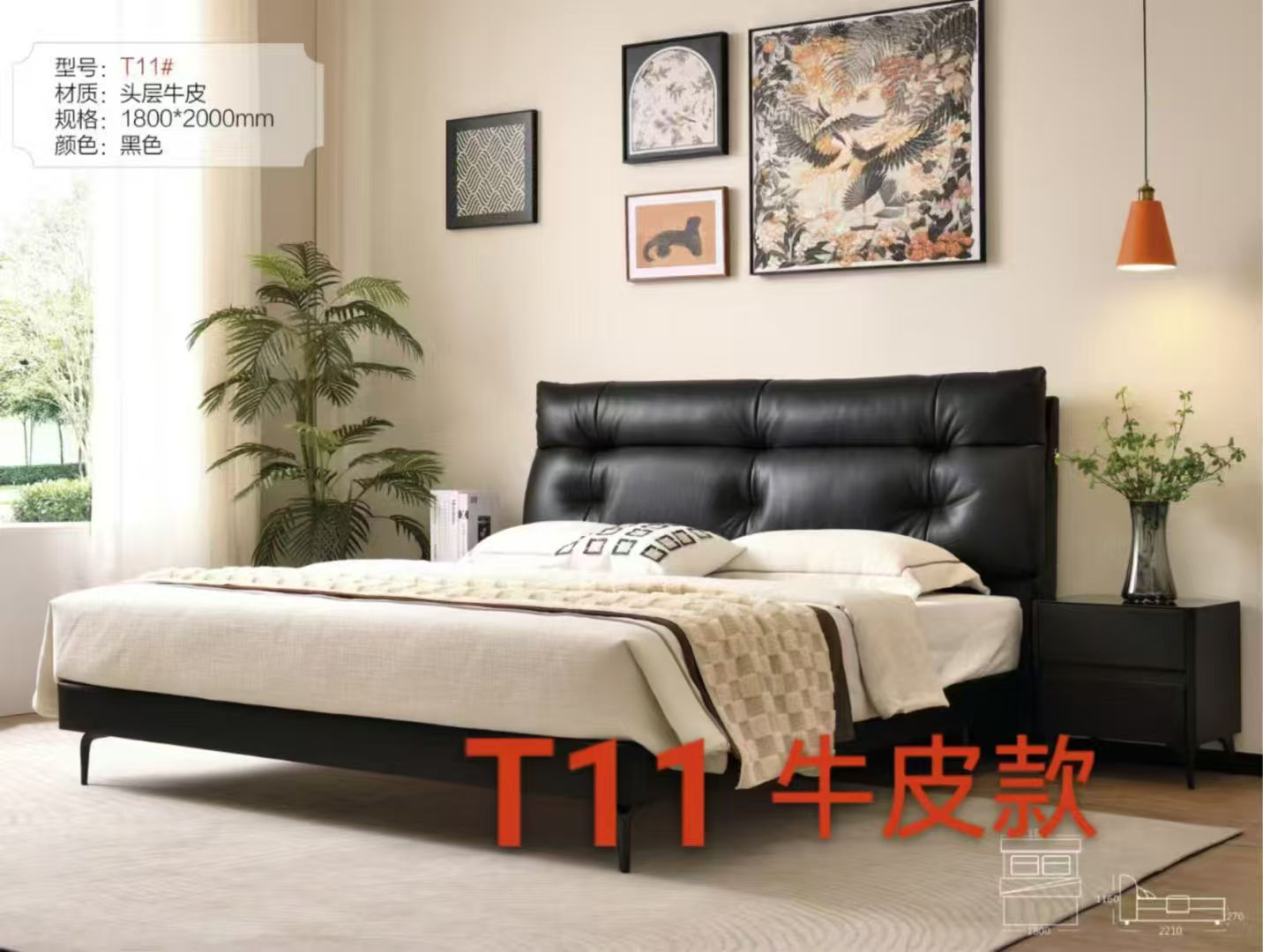 清境-T12#头层牛皮款橡木床