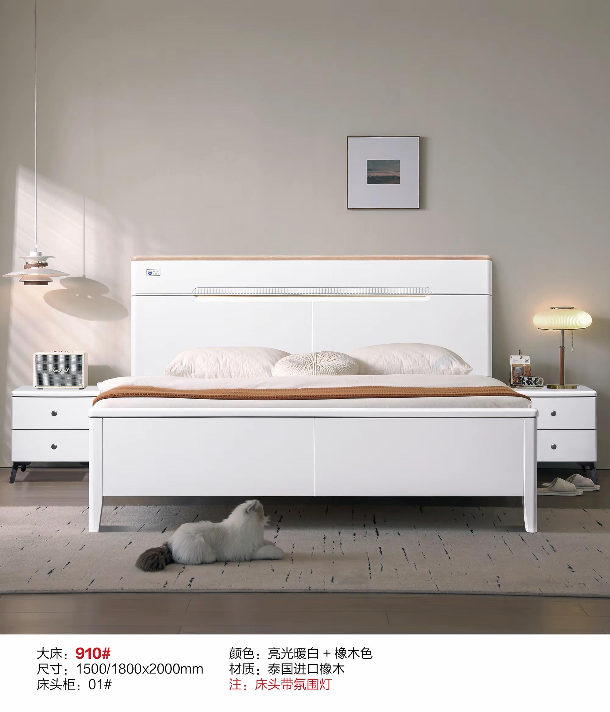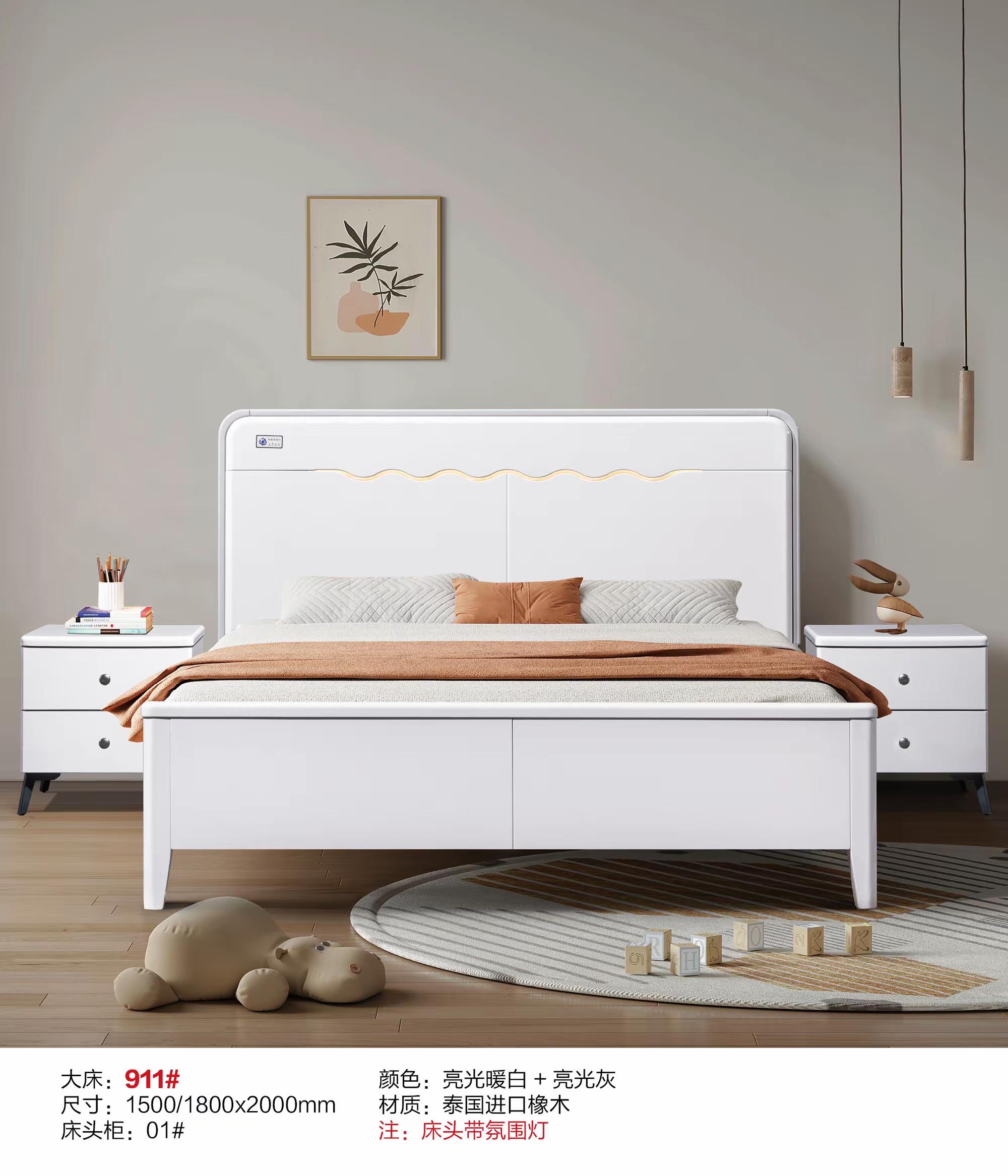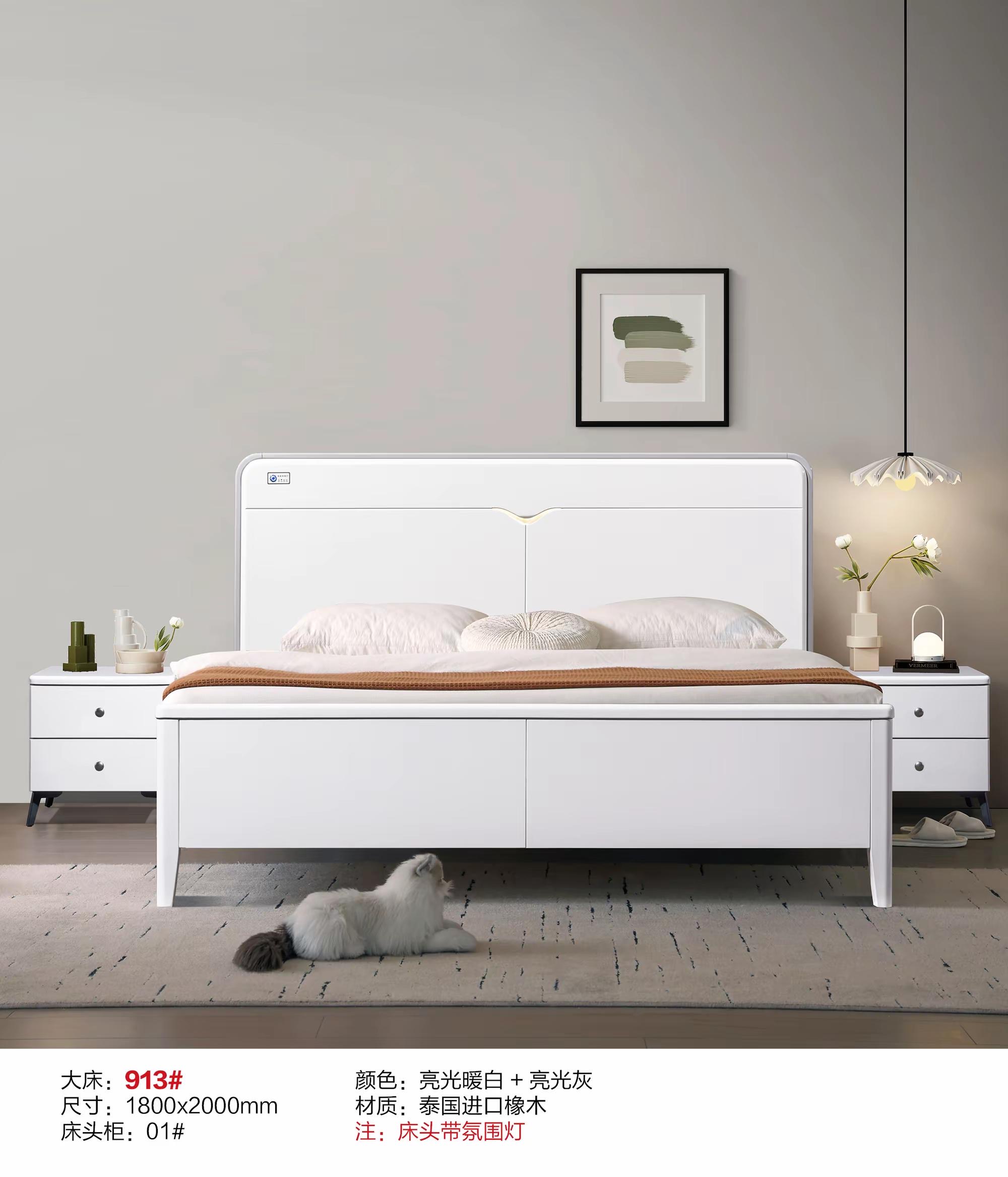 辉禾丰-橡木床913#(亮光暖白+亮光灰)