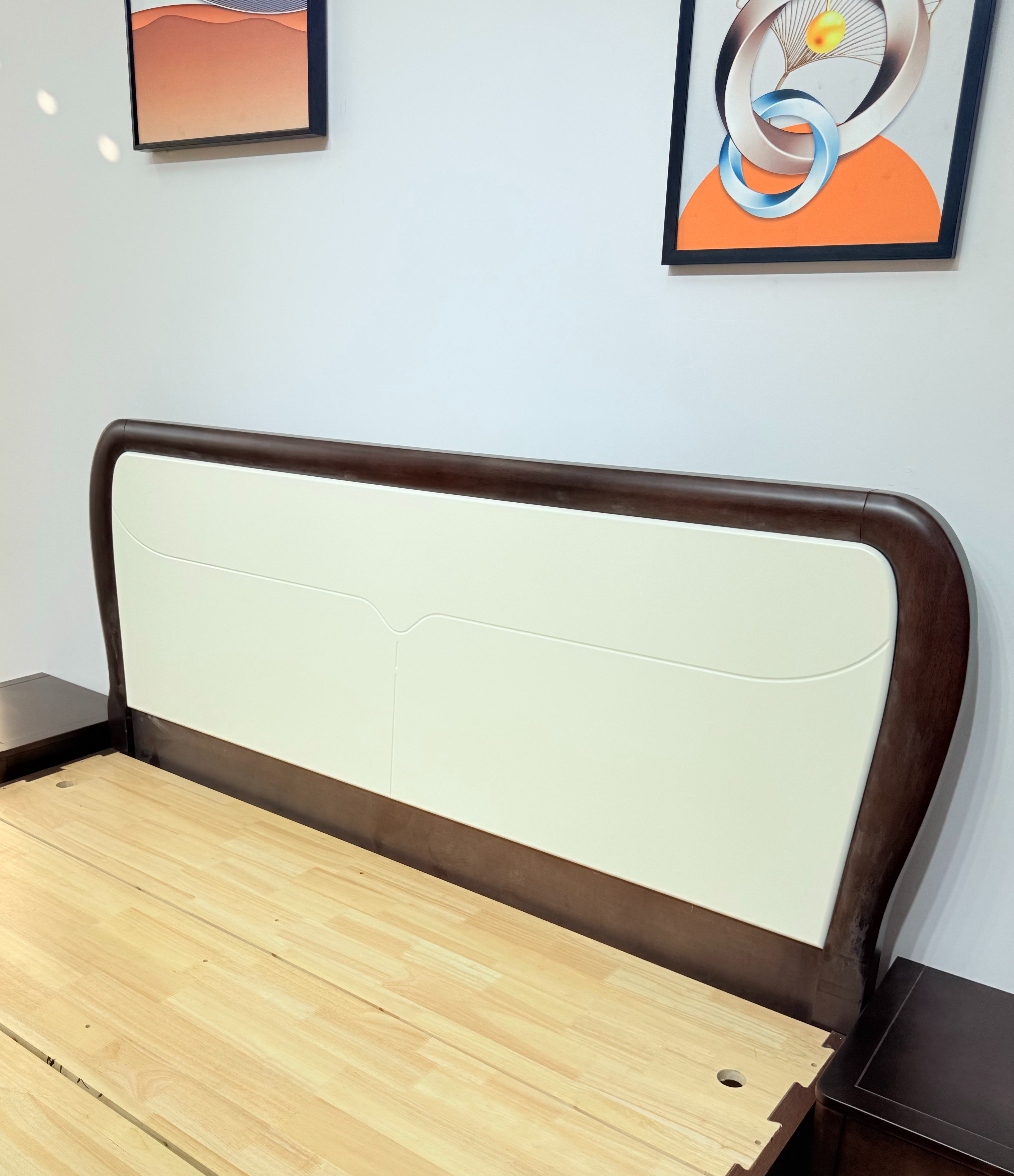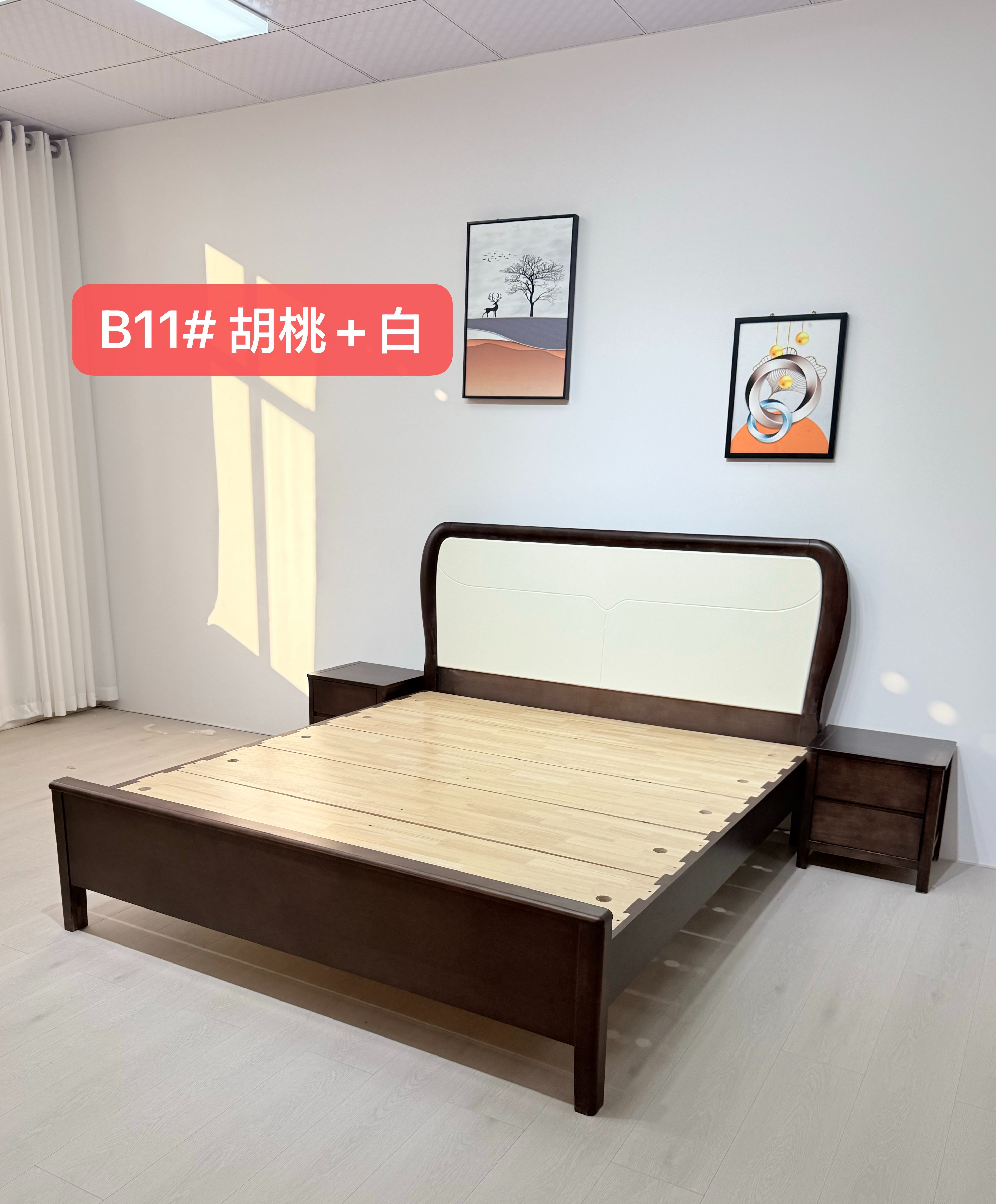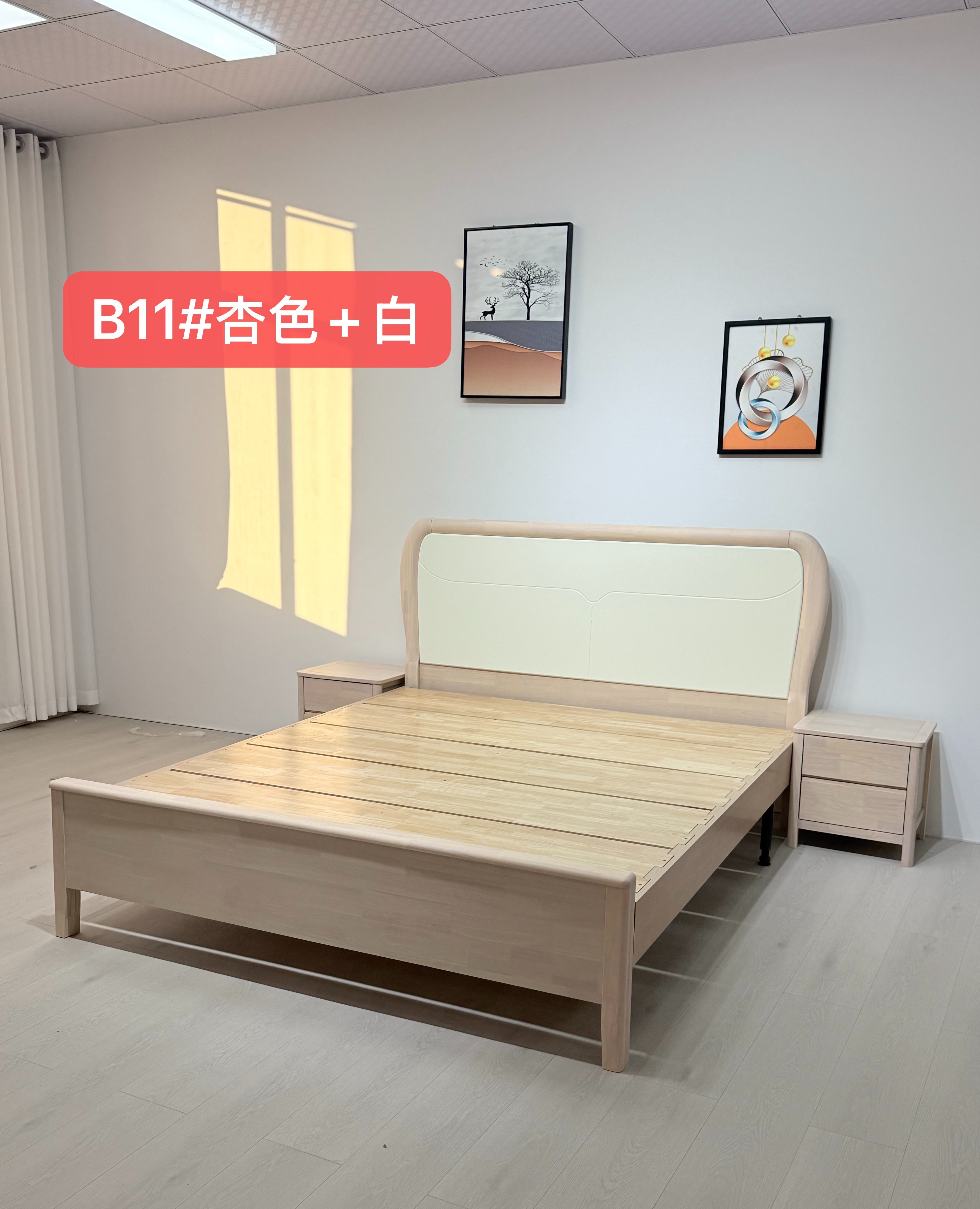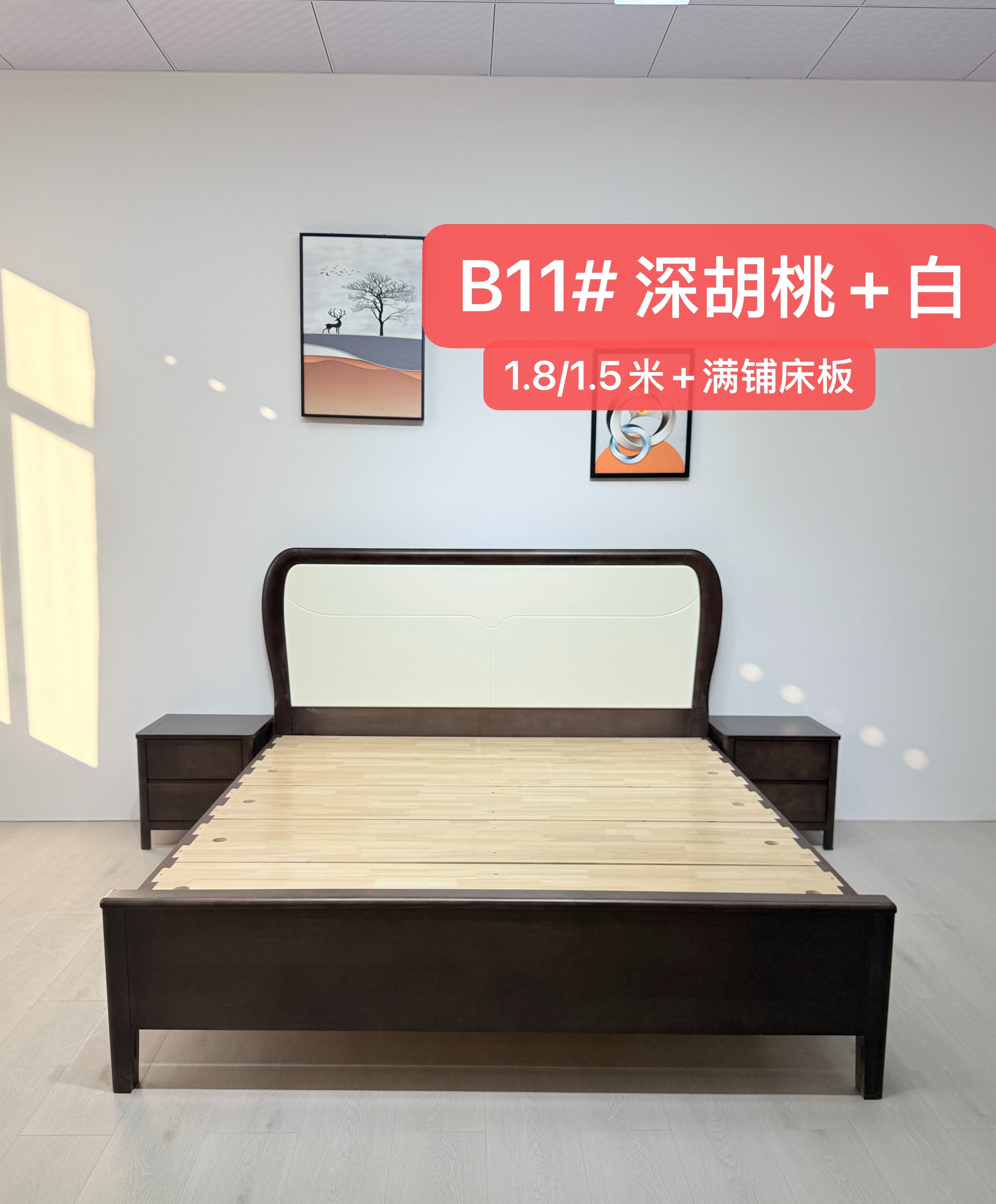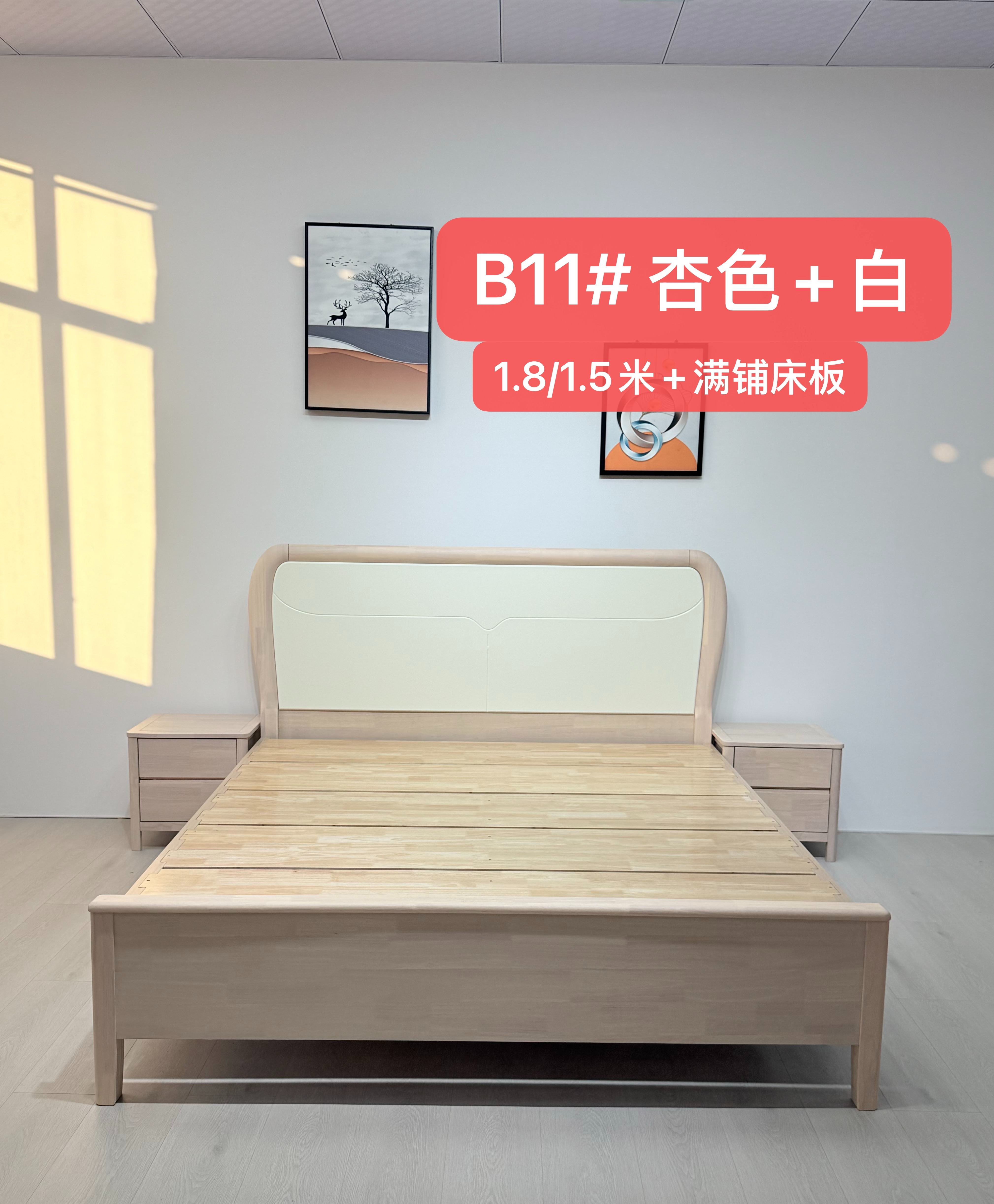 橡胶木框架 标配:月牙配色床边 3*6床子7根 配置2:实木满铺床板