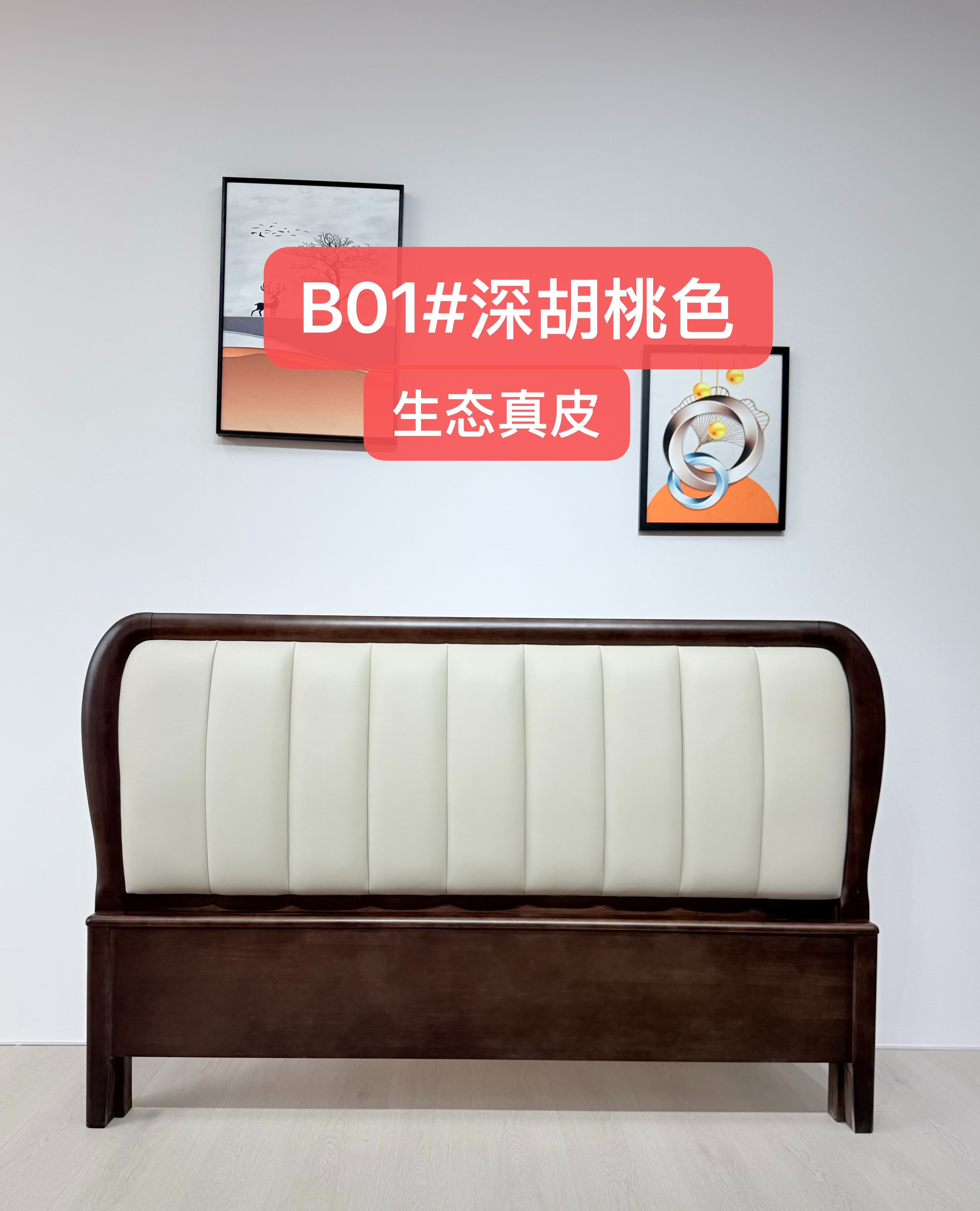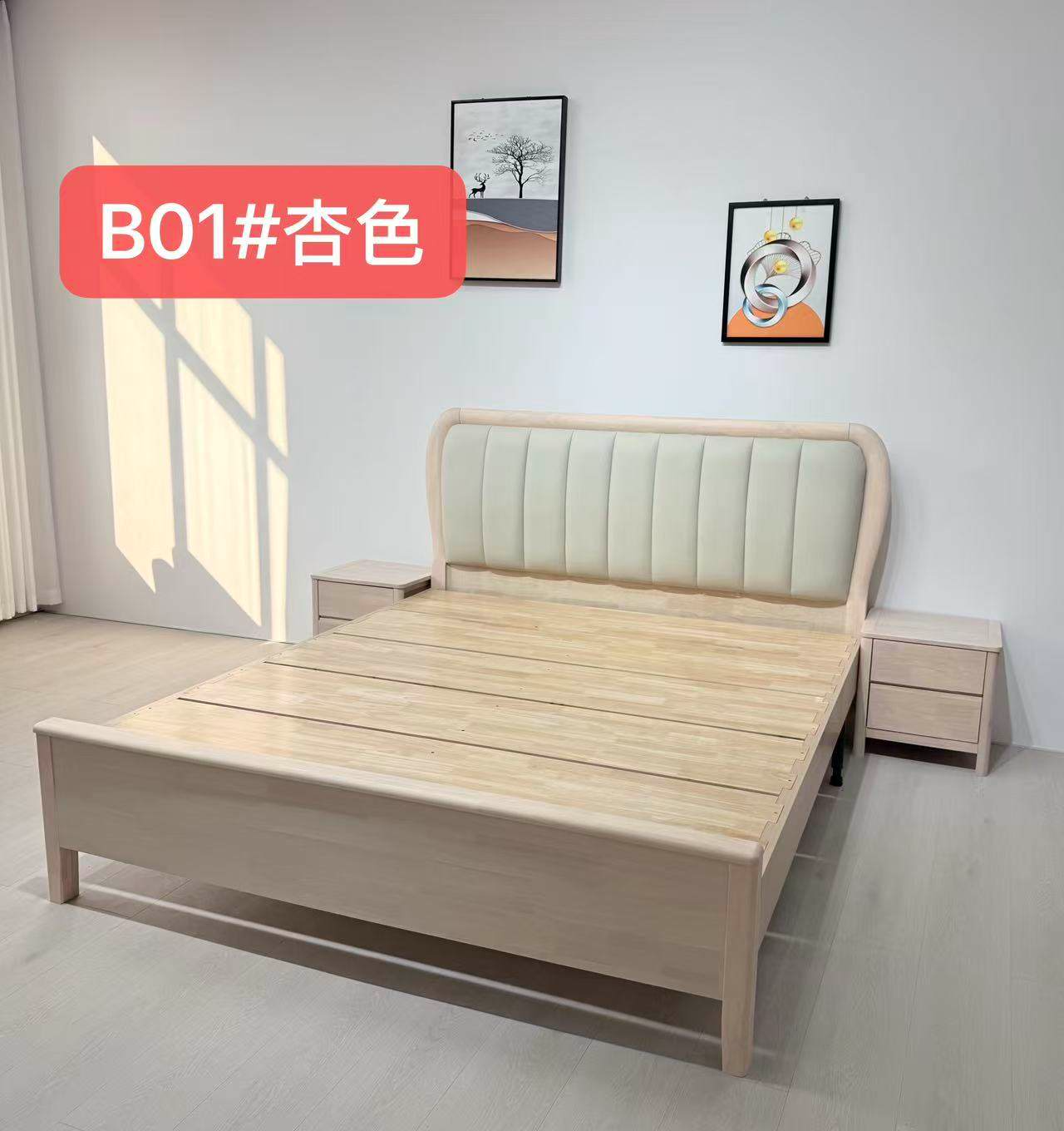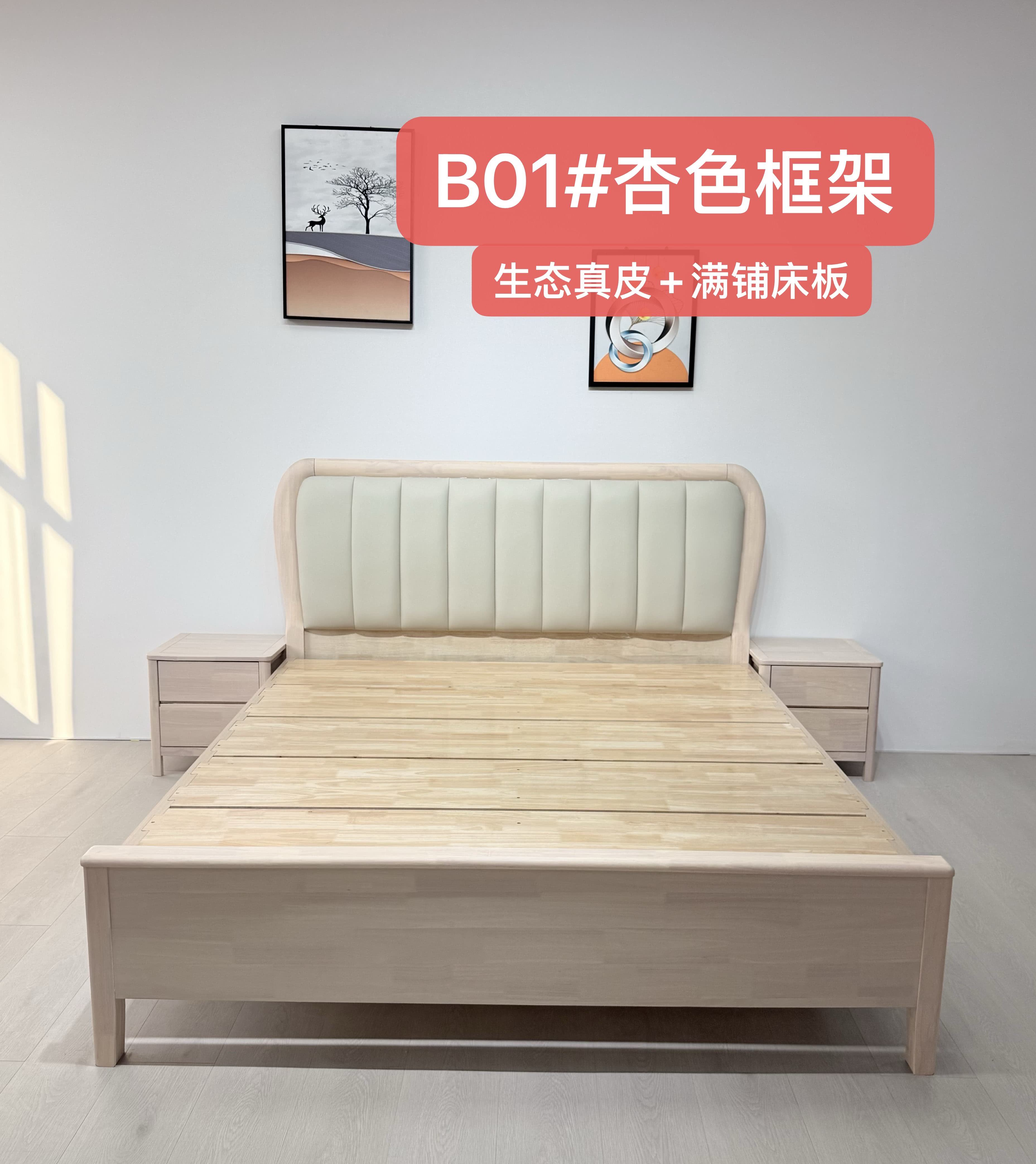 橡胶木框架+生态真皮 标配:月牙配色床边 3*6床子7根 配置2:实木满铺床板