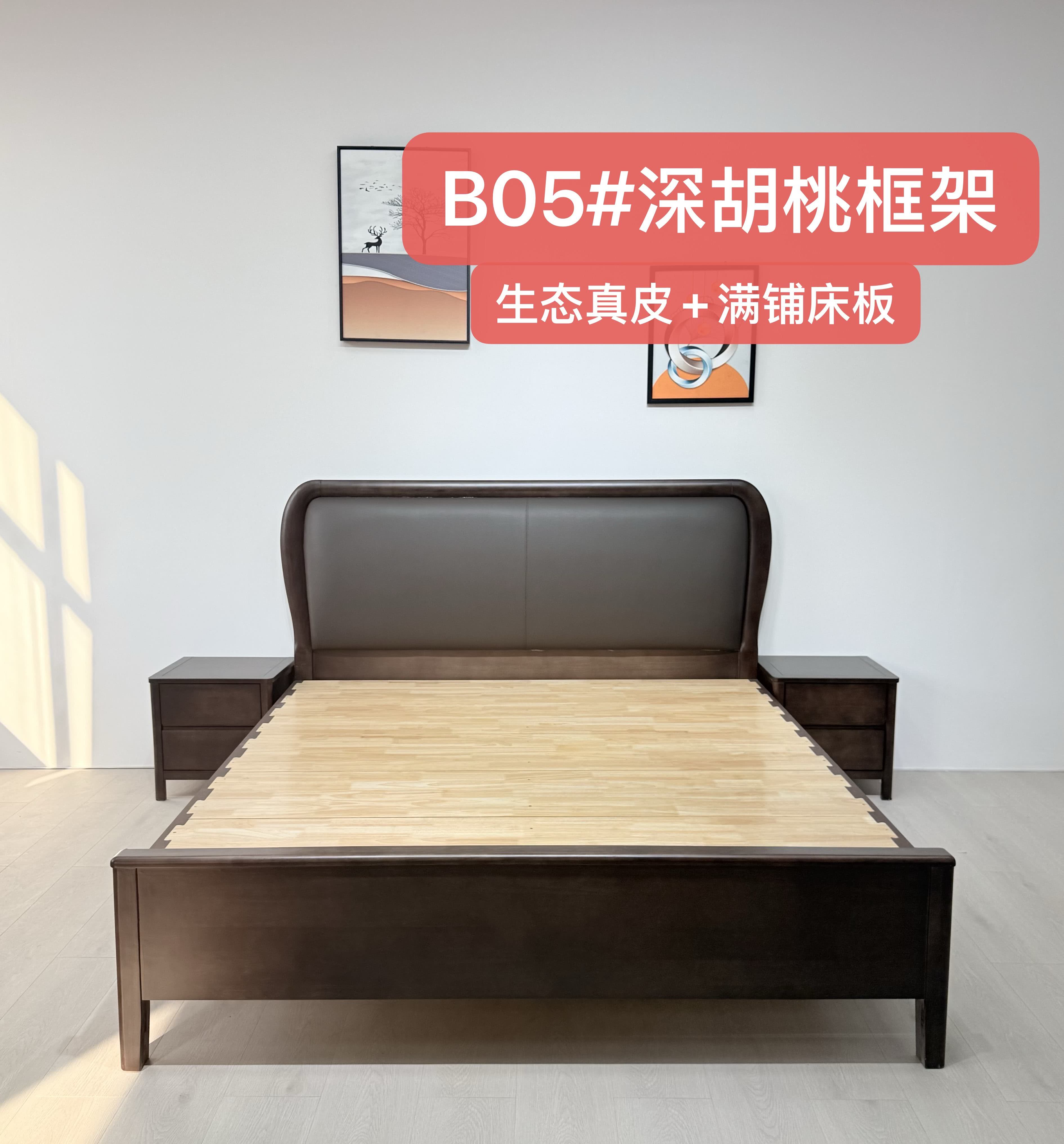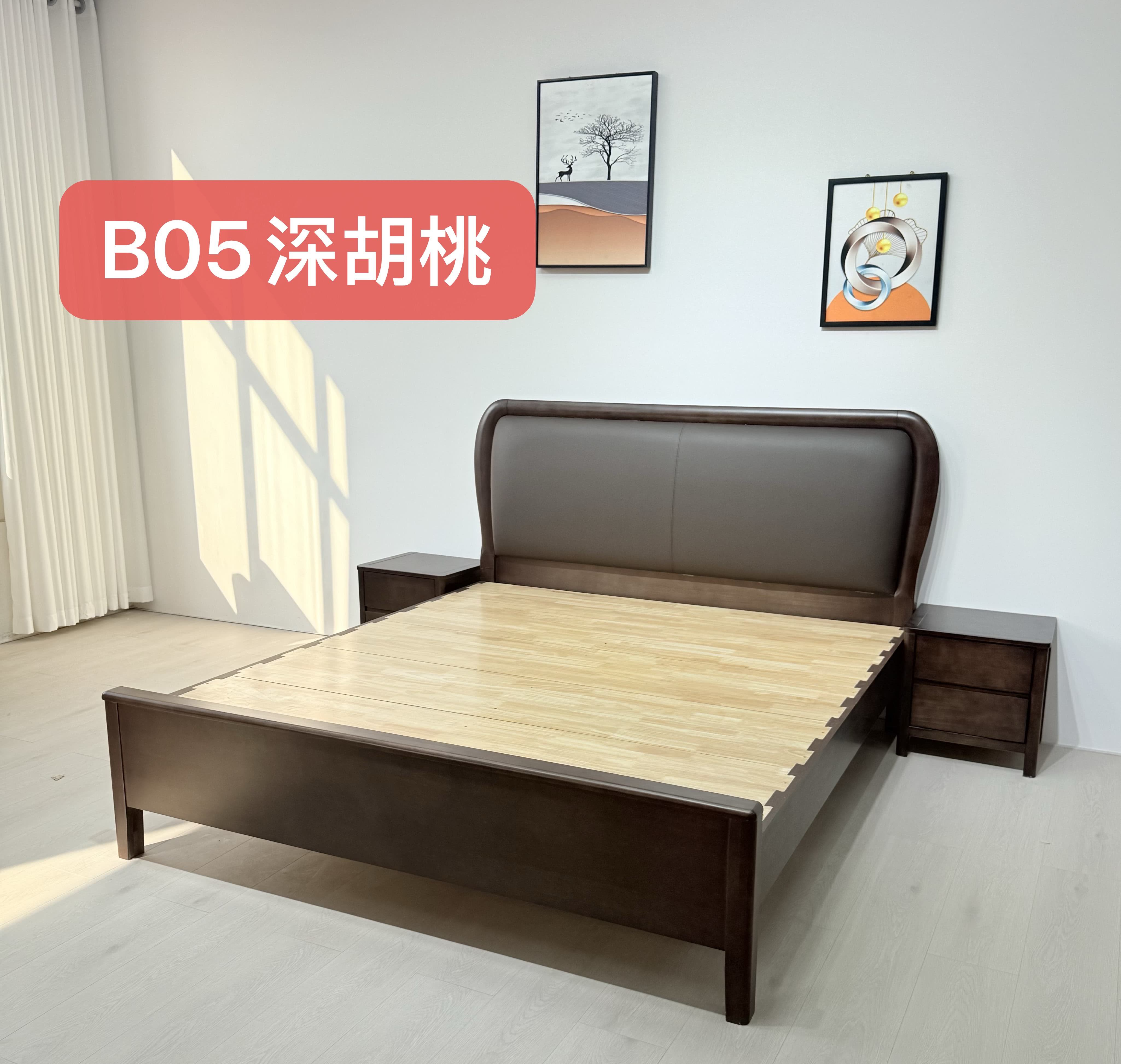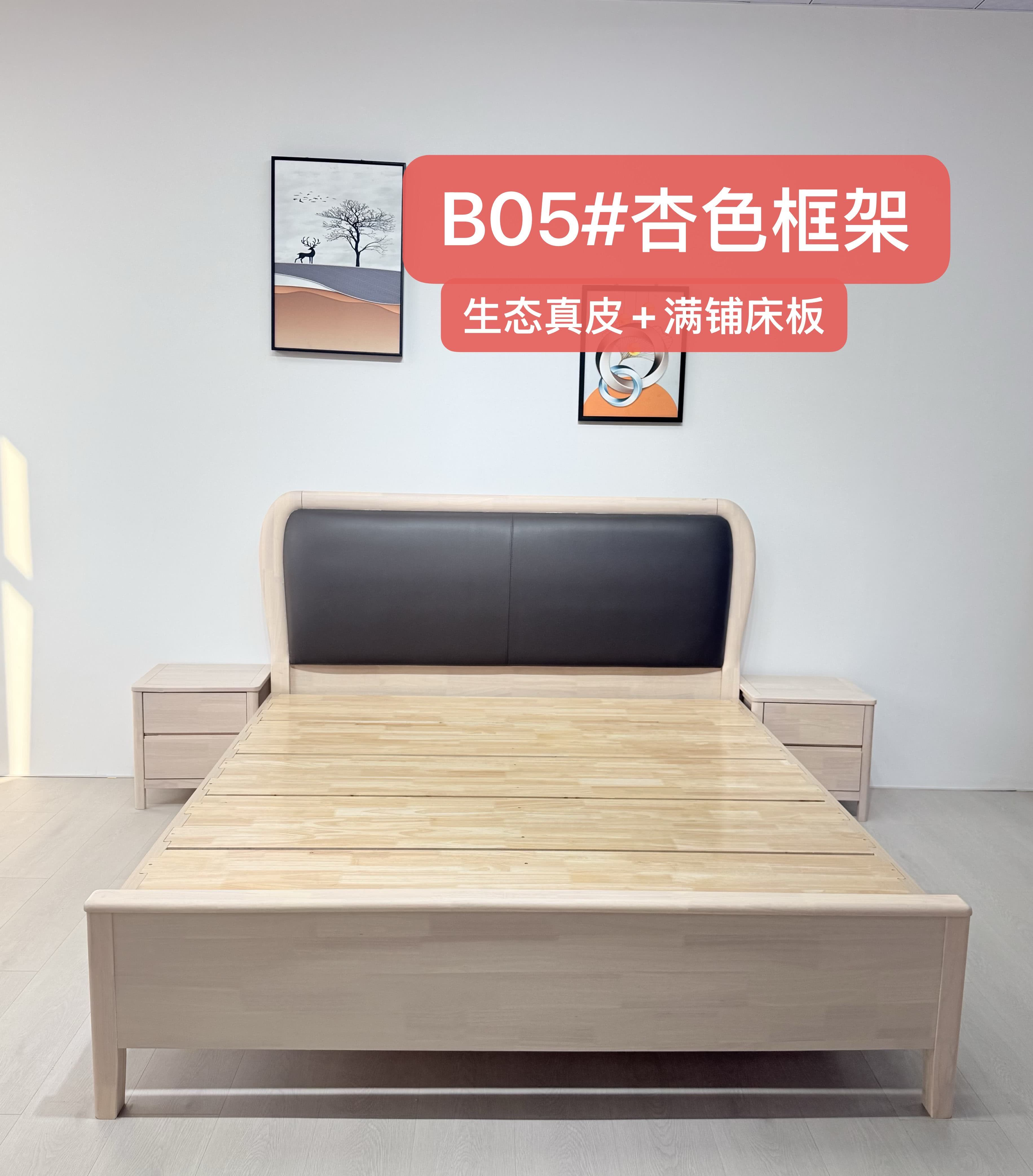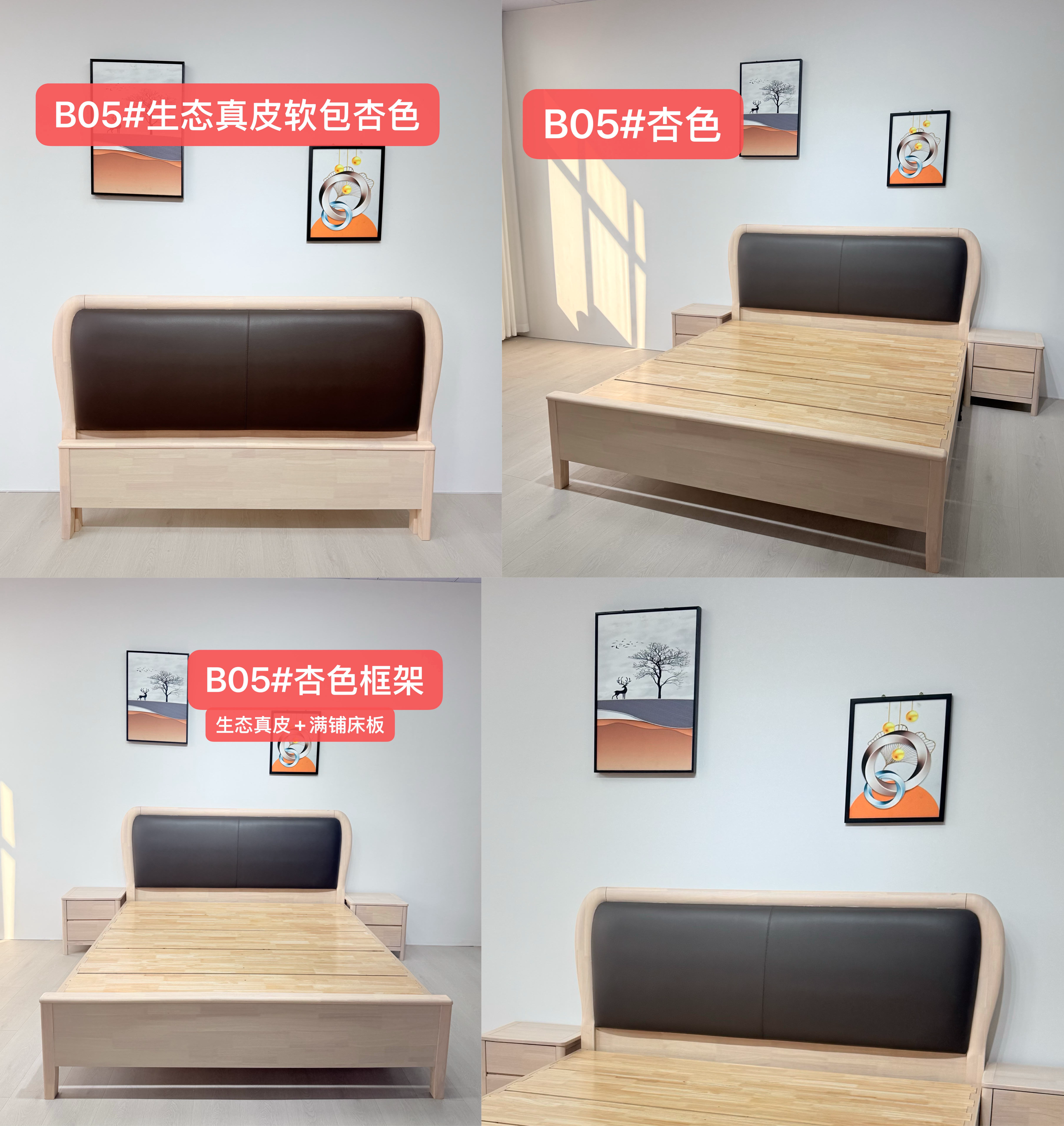 橡胶木框架+生态真皮 标配:月牙配色床边 3*6床子7根 配置2:实木满铺床板