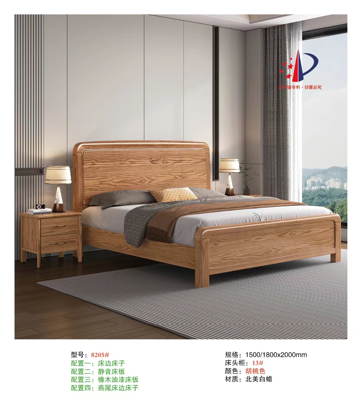 北美白蜡 标配:3/20月牙桉木蕊床边,3/6/7杉木床子