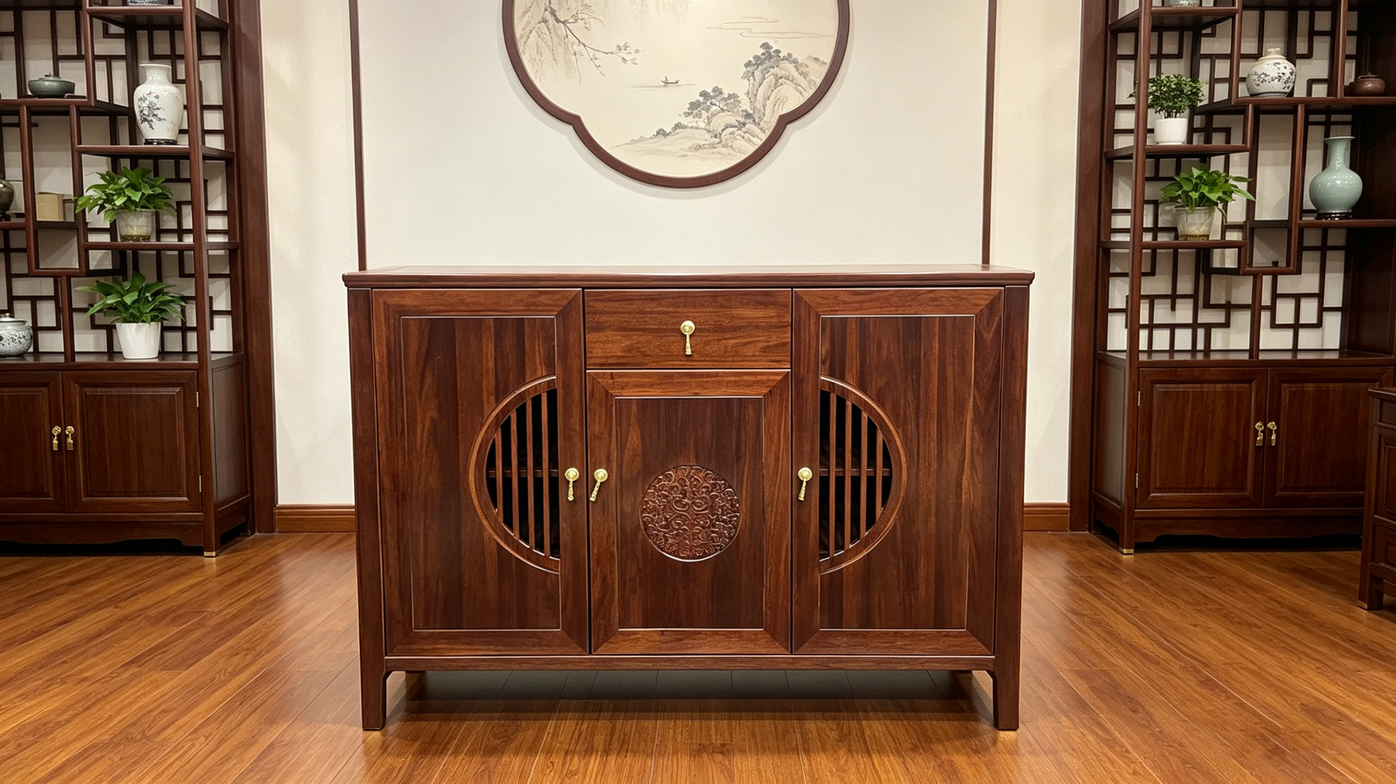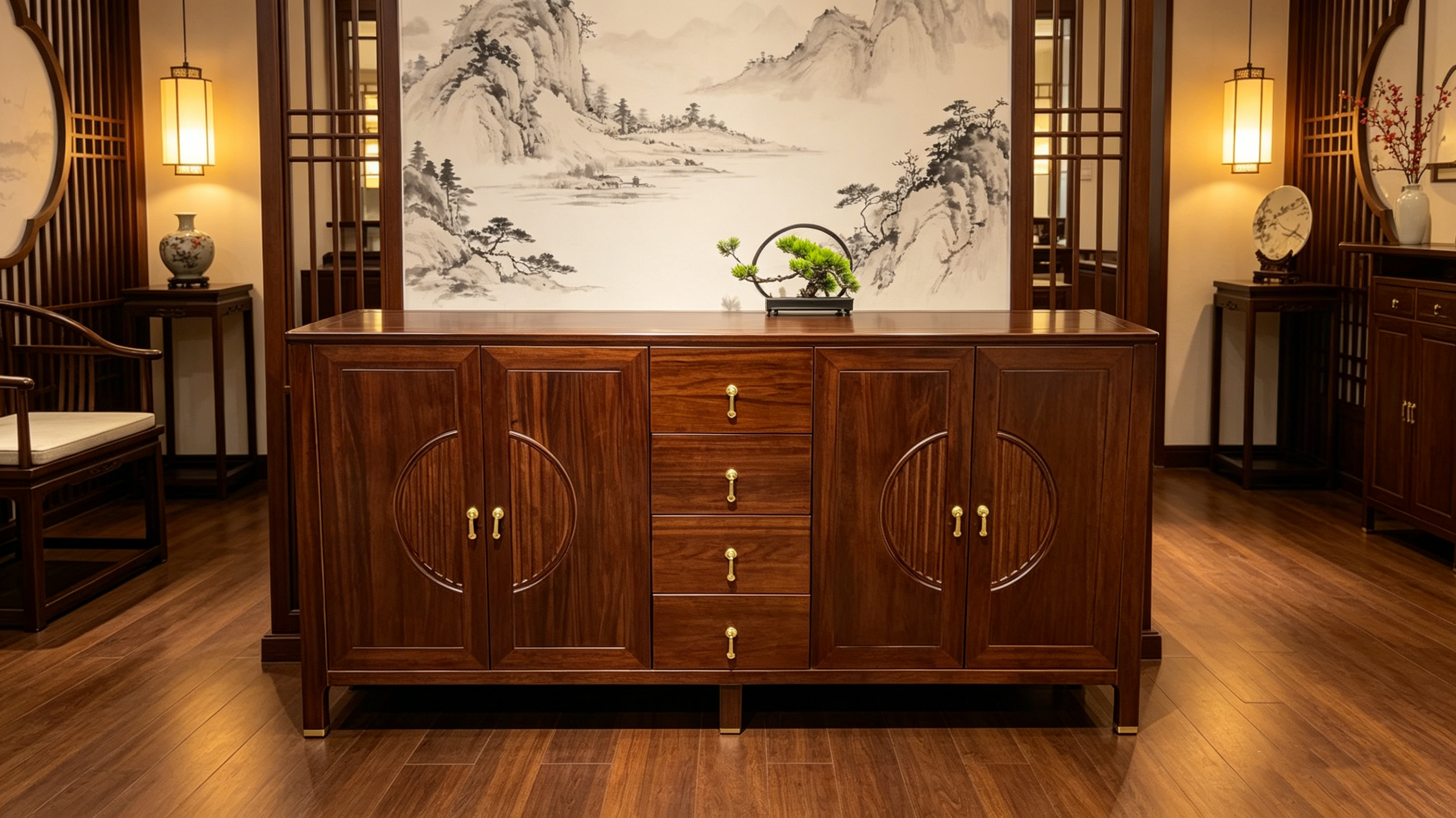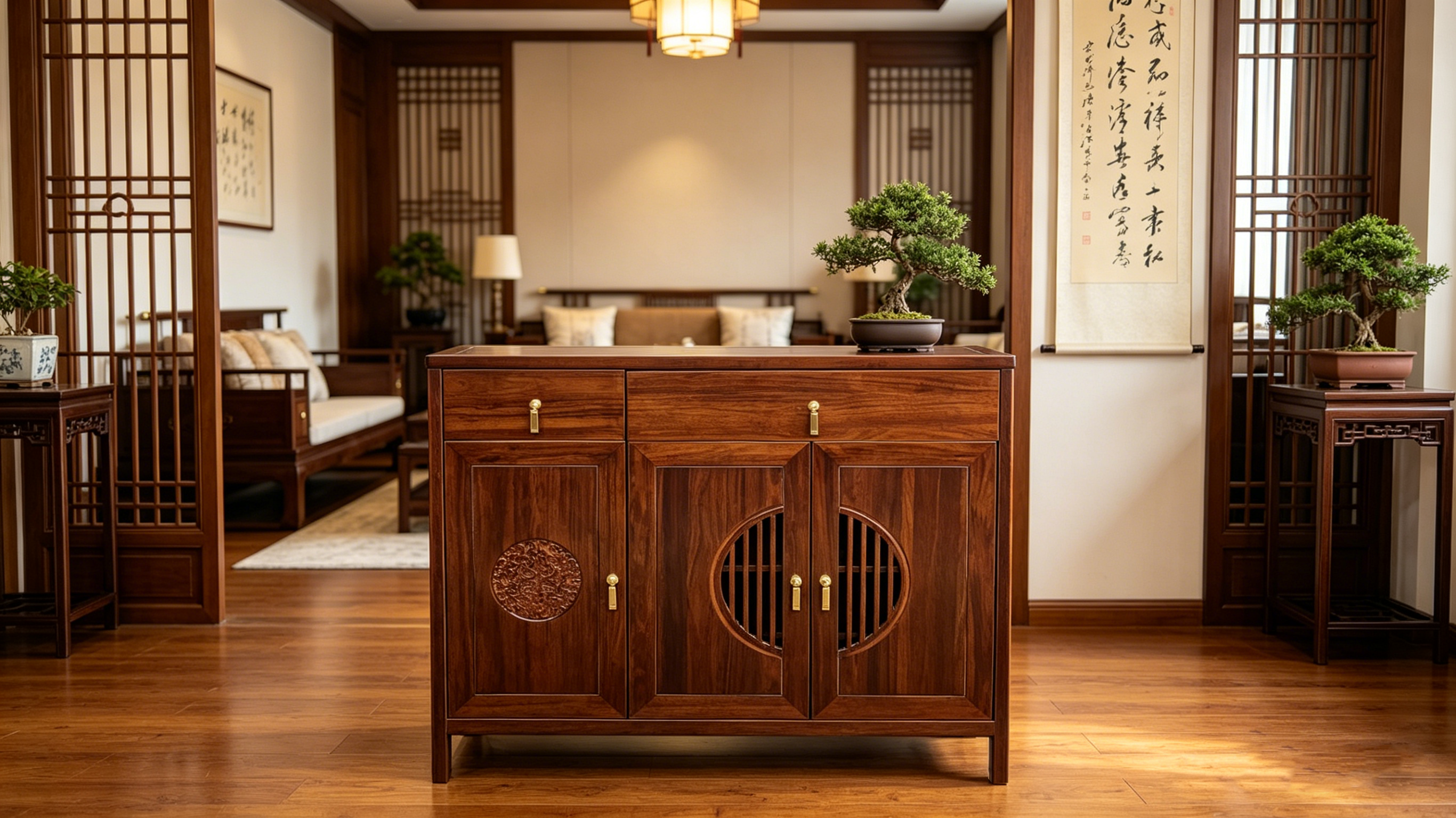 夏华信-新中式乌金木斗柜/玄关柜