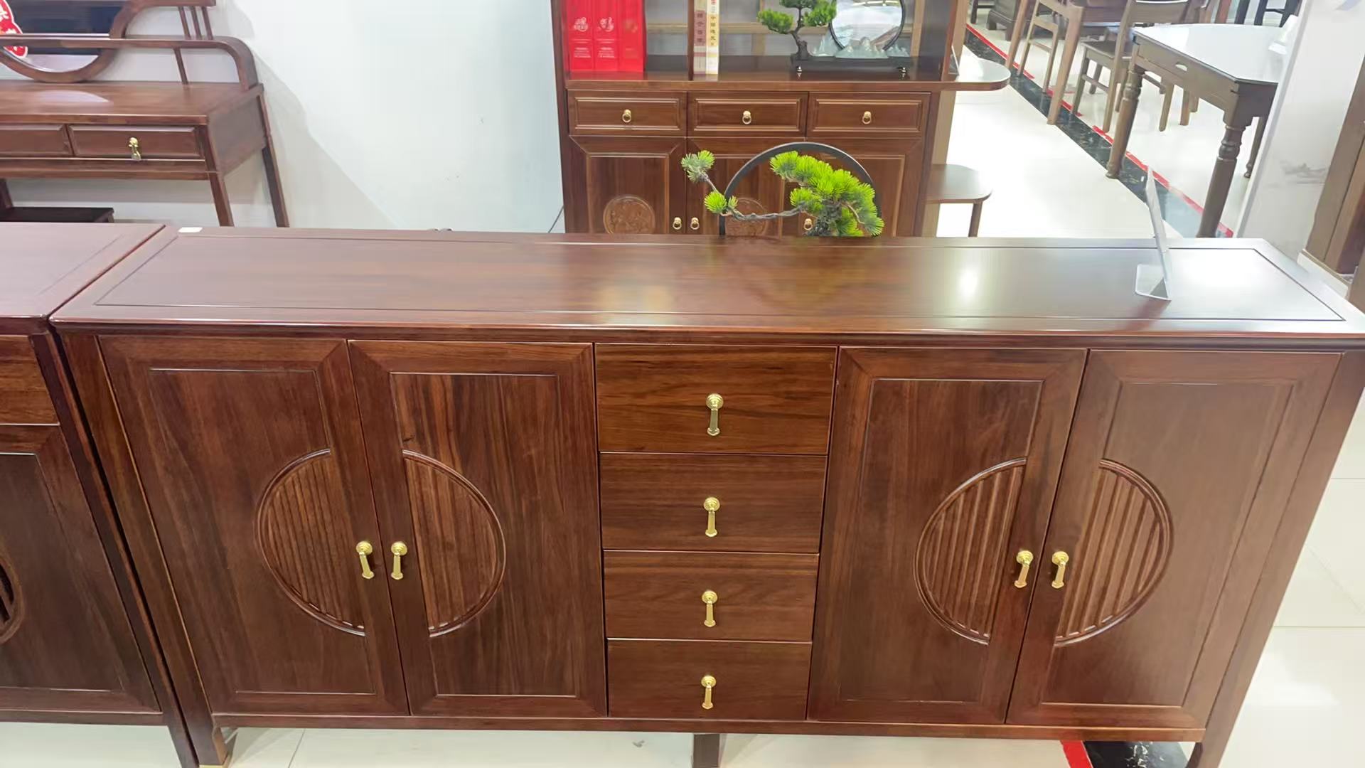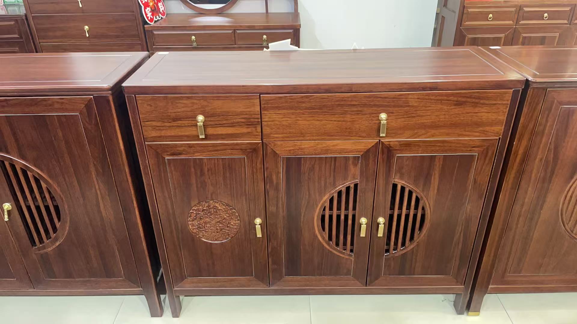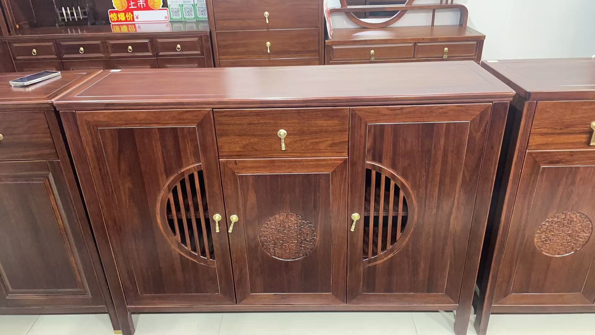 夏华信-1.2m/1.4m/2.0m乌金木玄关柜新中式
