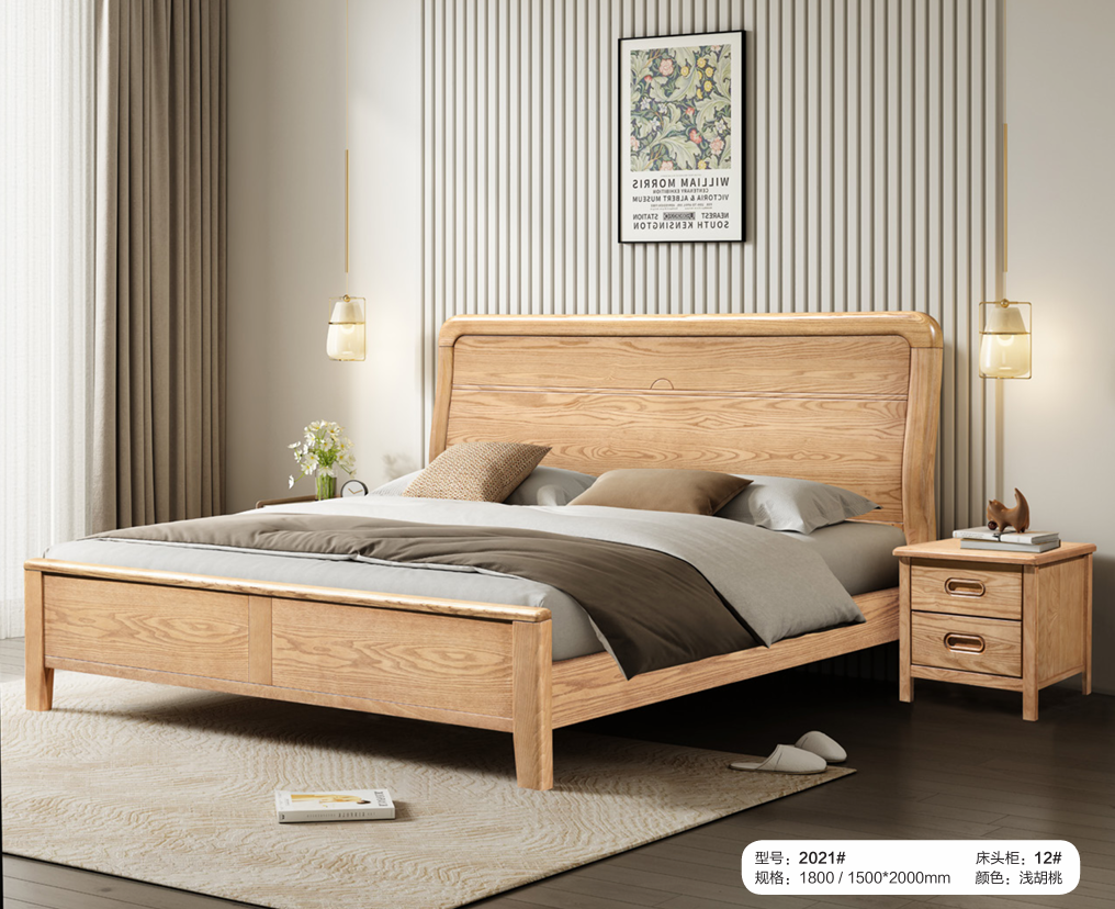 龙凯安家居-现代实木轻奢白蜡木床2021#