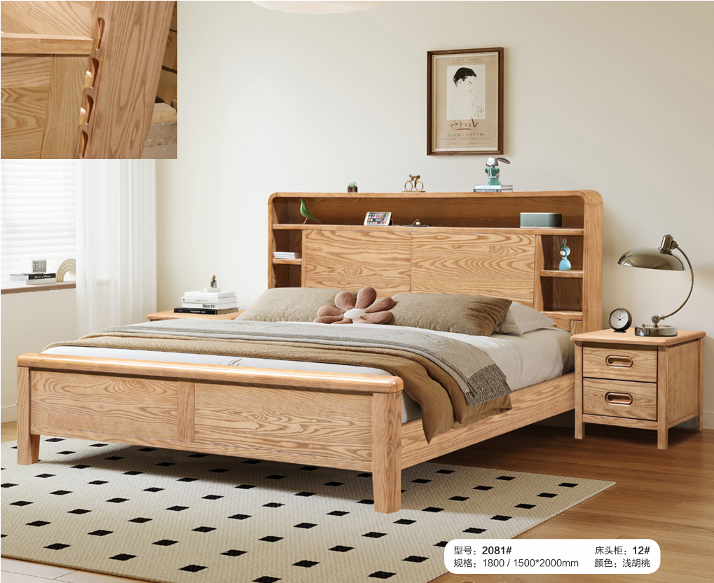 龙凯安家居-现代实木轻奢白蜡木床2081#