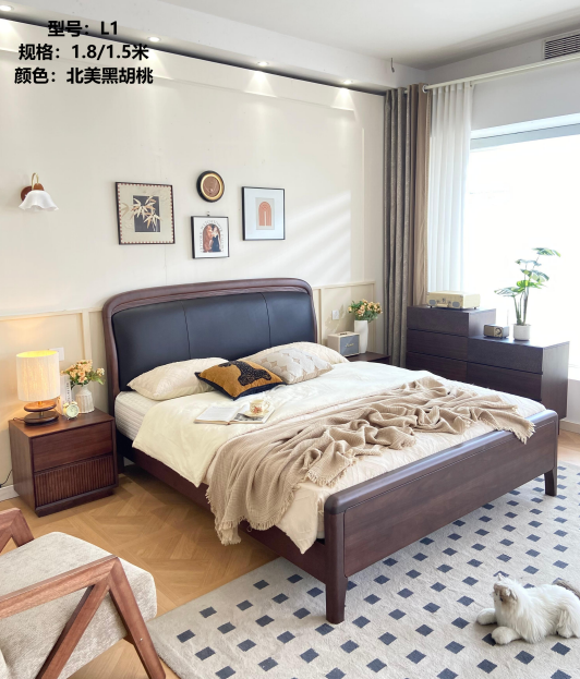 两种床板配置可选:①橡木同色油漆床板,两公分厚的,带两根轮毂,床边是4×17的橡木床边
