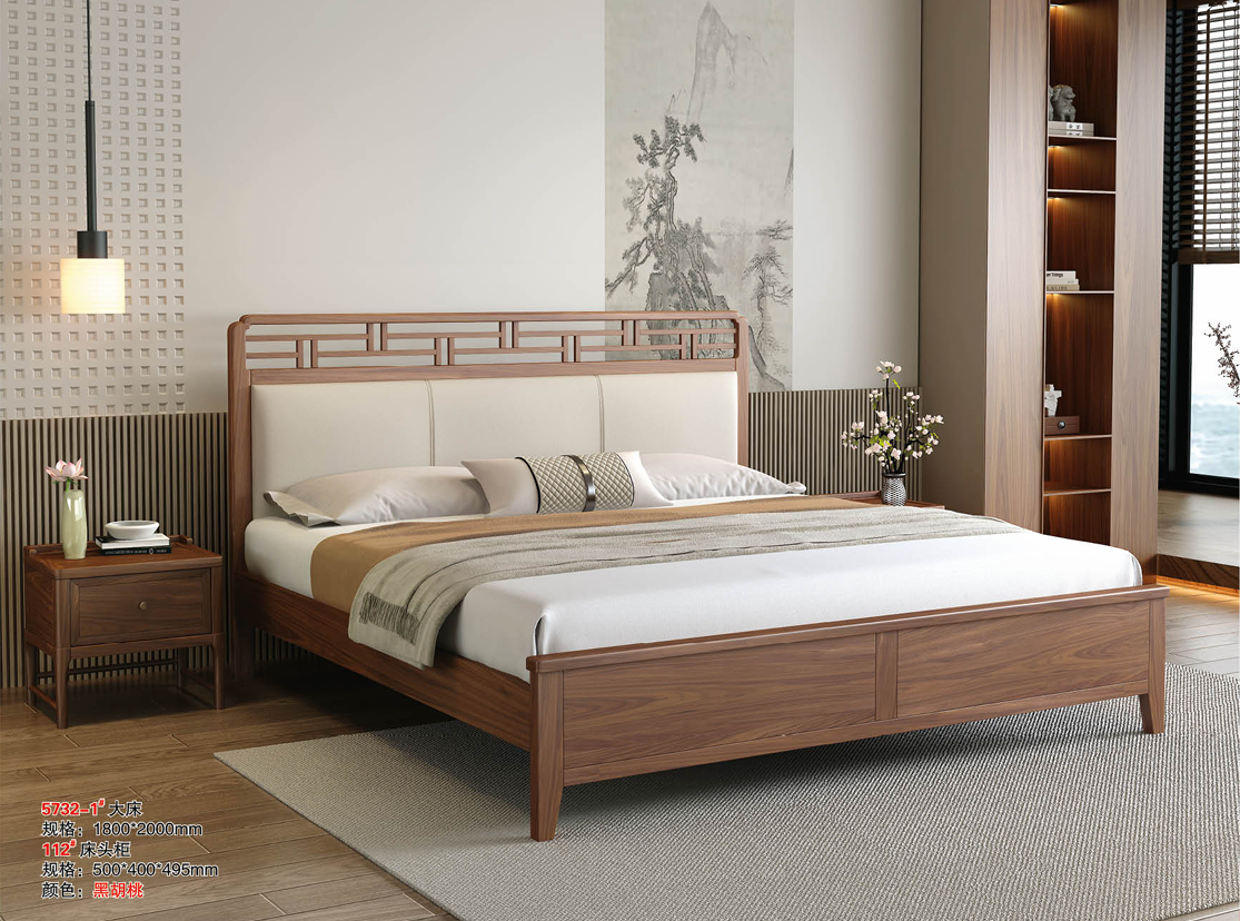 万森家居-#5732宋氏美学乌金木软靠床