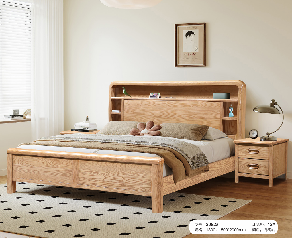 龙凯安家居-现代实木轻奢白蜡木床2082#