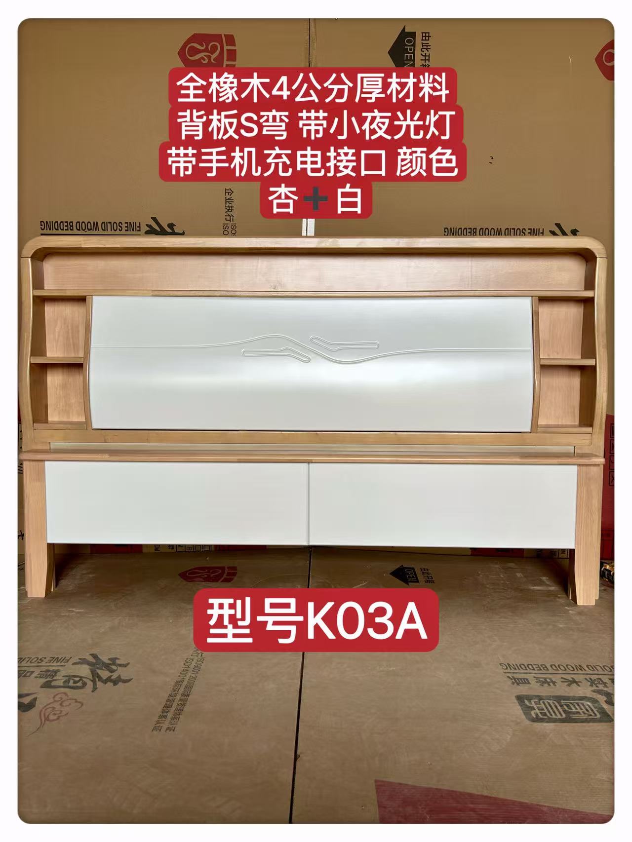 全橡木4公分厚材料背板S弯带小夜光灯带手机充电接口