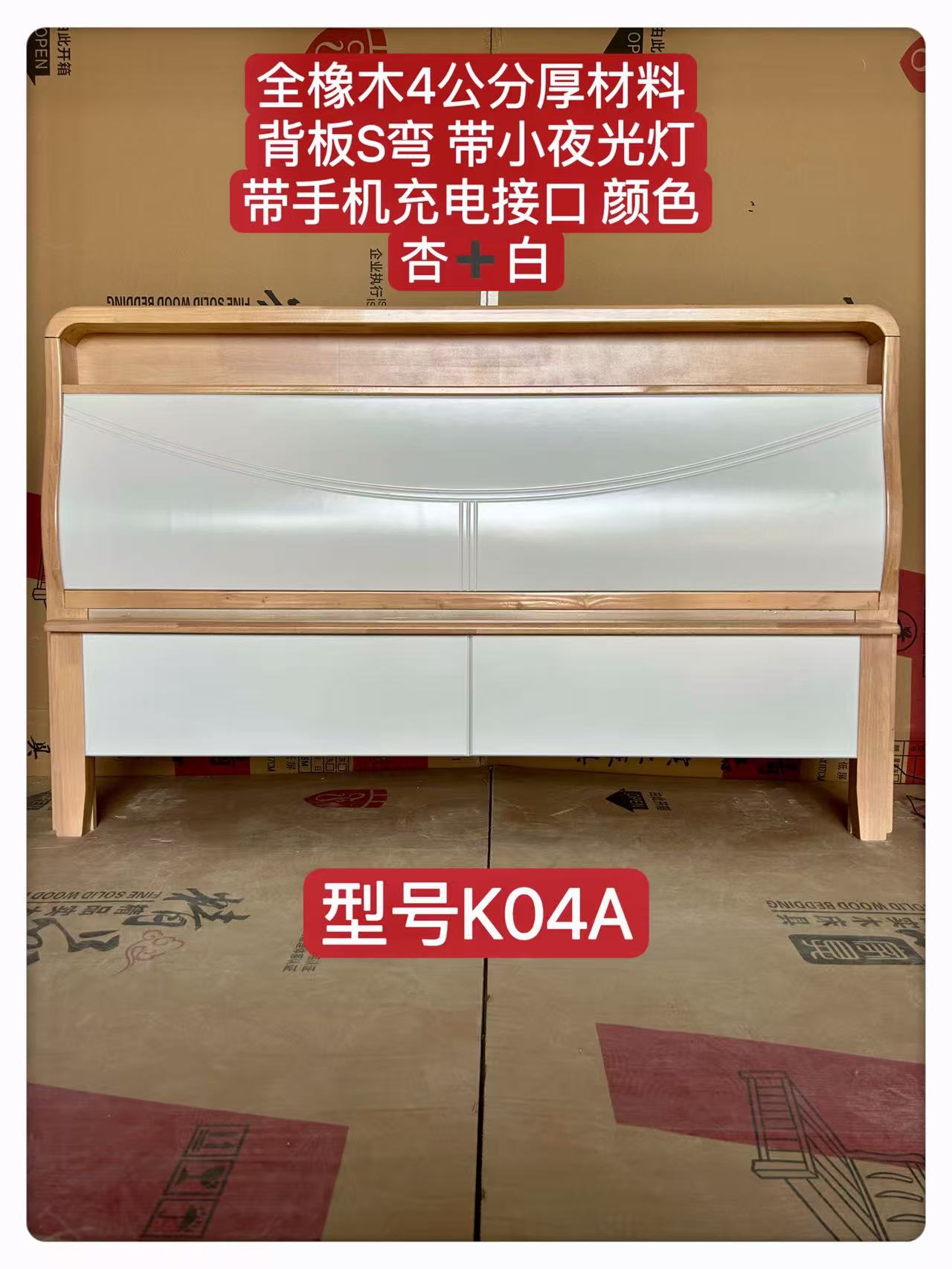全橡木4公分厚材料背板S弯带小夜光灯带手机充电接口