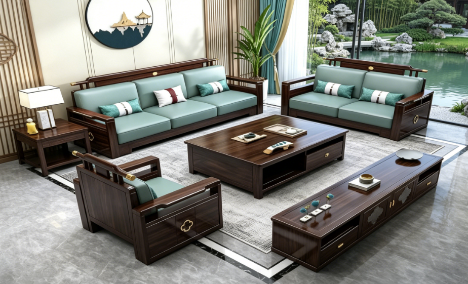 喜汇家居-新中式系列810#(1+2+3+长几+方几)沙发