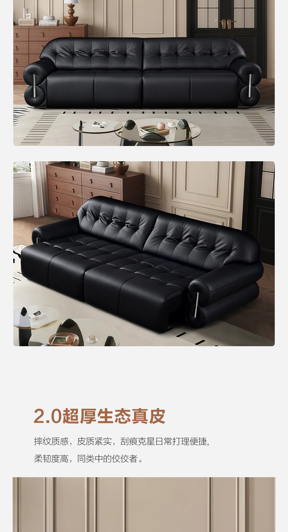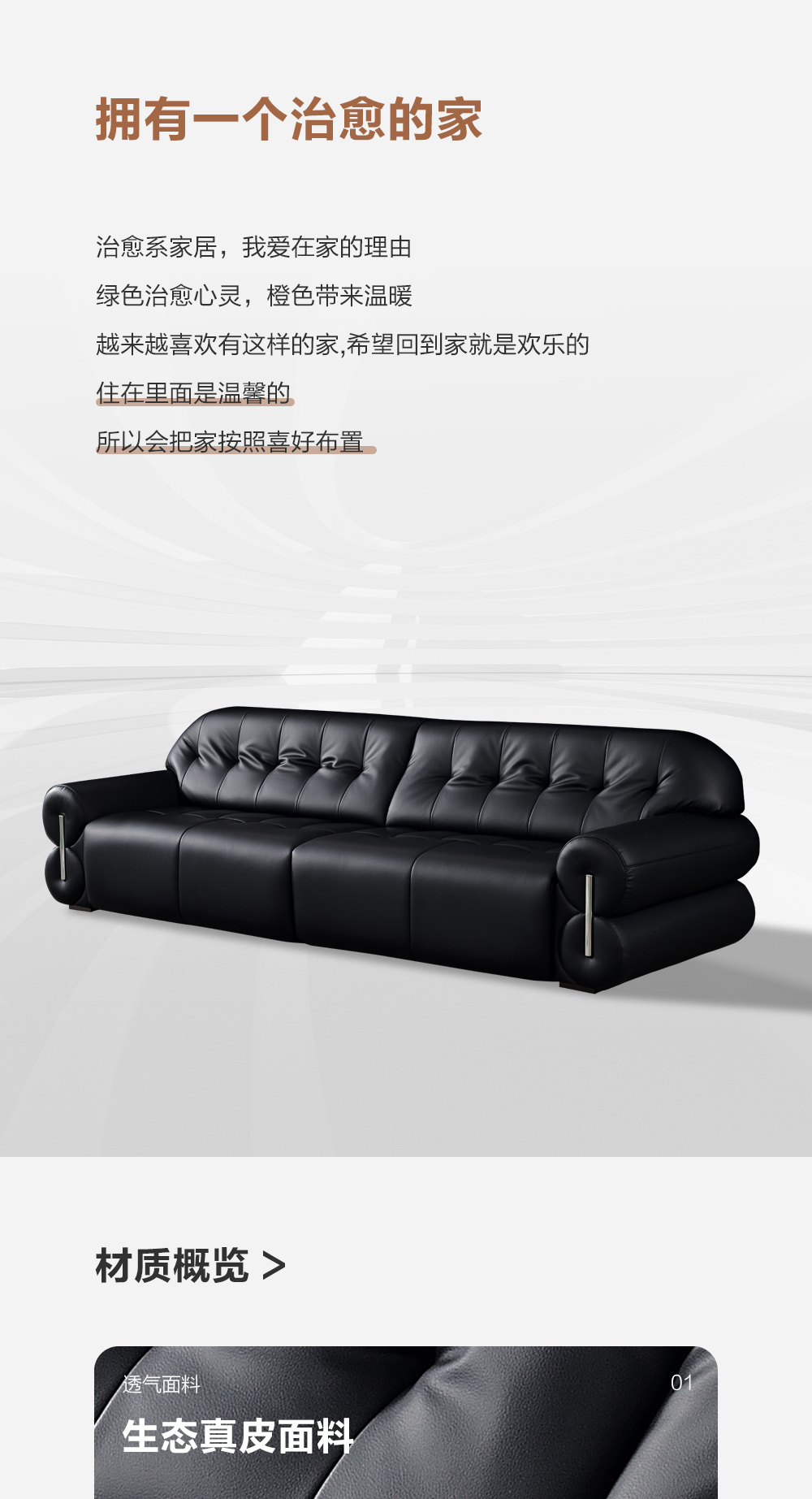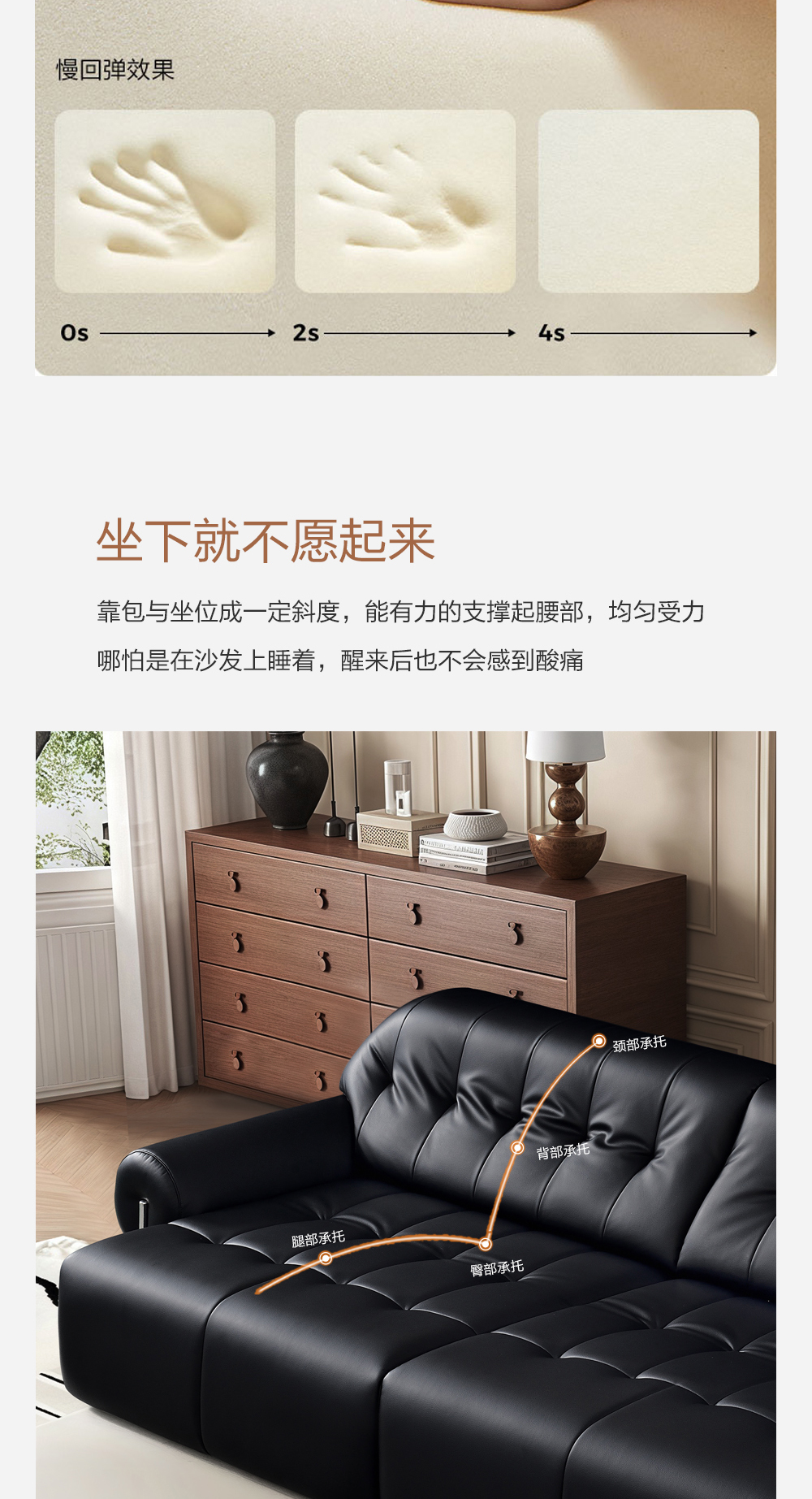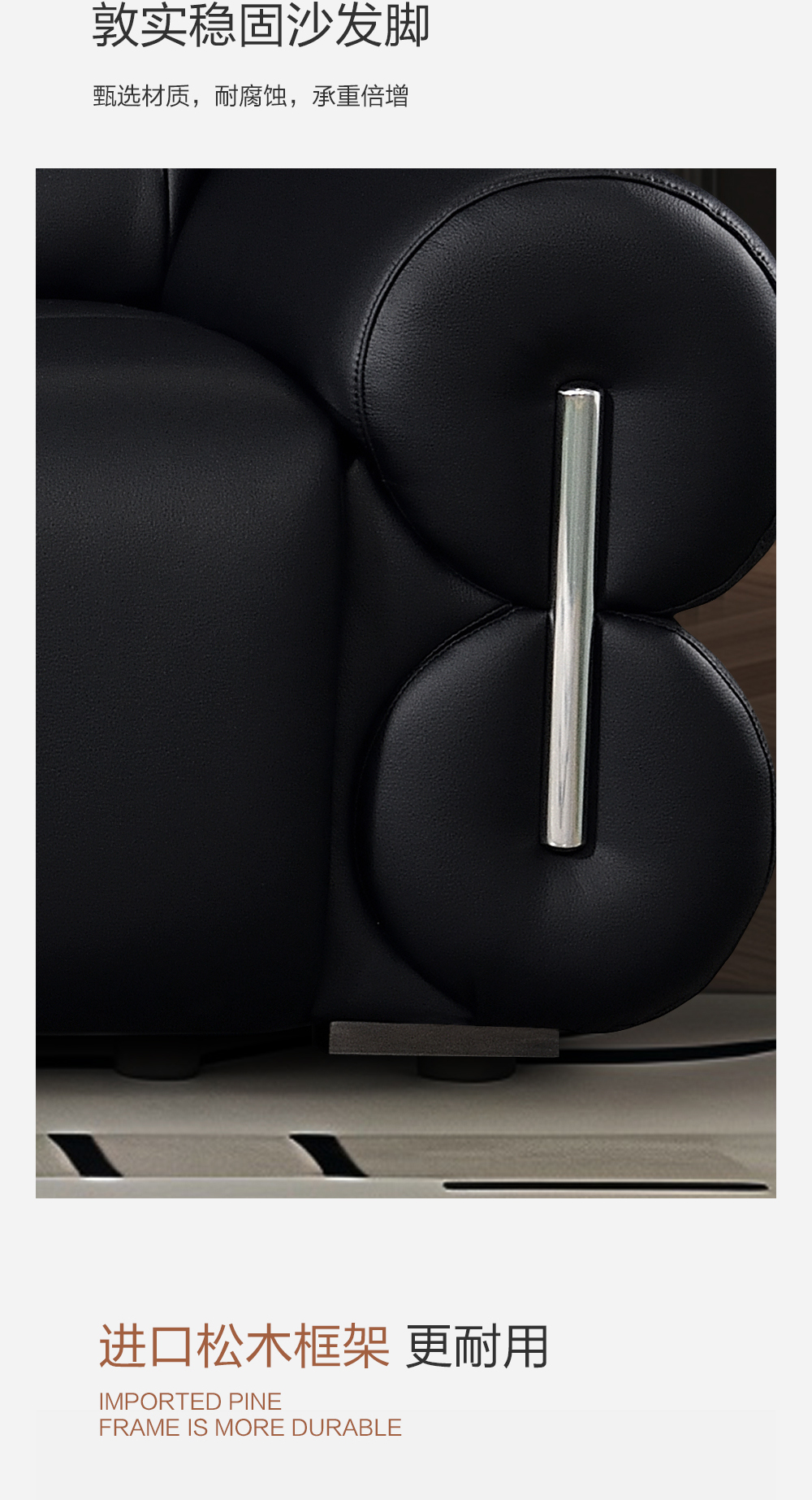 生态真皮+高密度海绵+实木拉簧底架