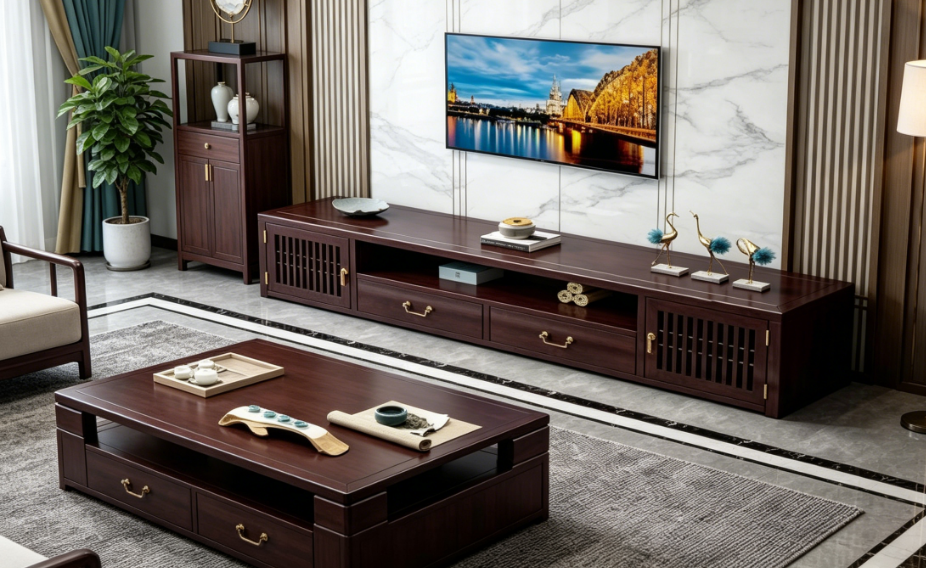 材质:红玫瑰 电视柜:200*42*48cm 茶几:120*120cm 颜色:乌金系列