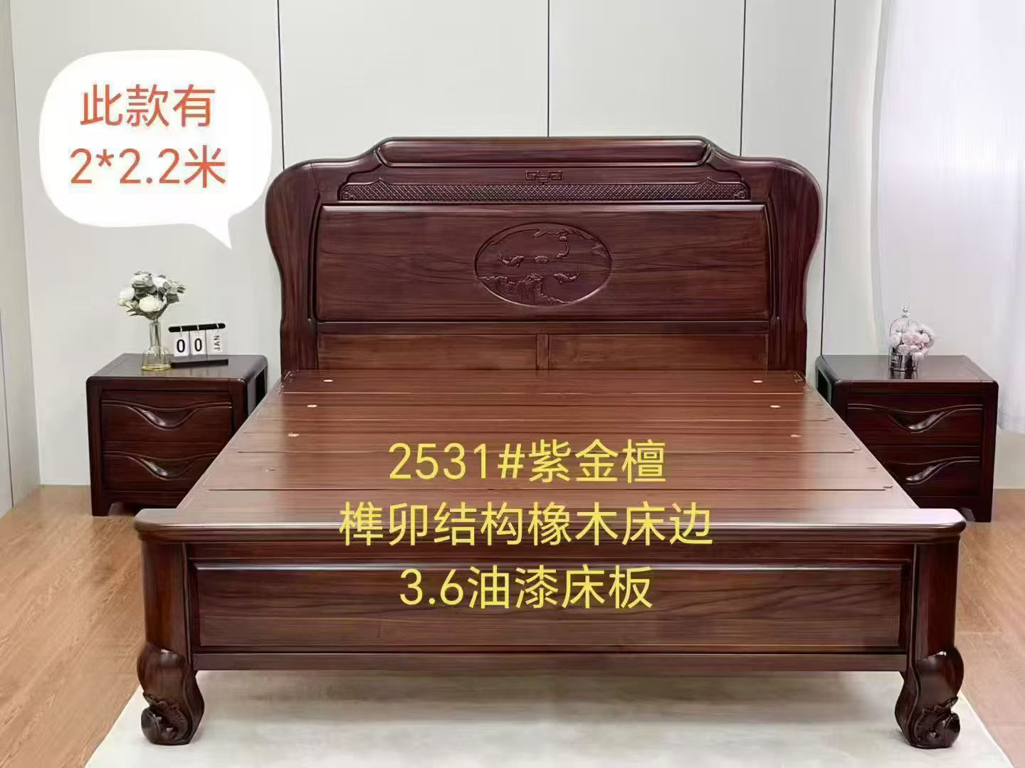 橡木 标配:不含床板(榫卯结构橡木床边) 配置1:2.6/3.6厚杉木床板 配置2:3.6厚油漆床板