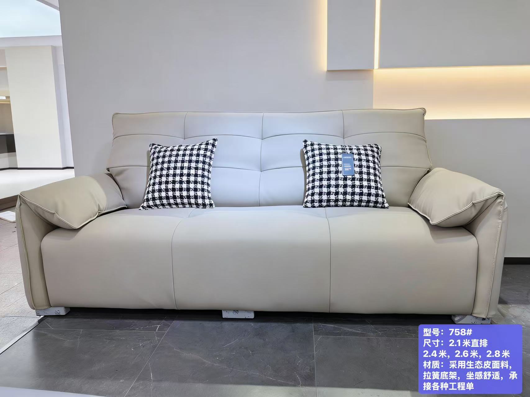 生态皮+实木框架+拉簧底架+高回弹海绵