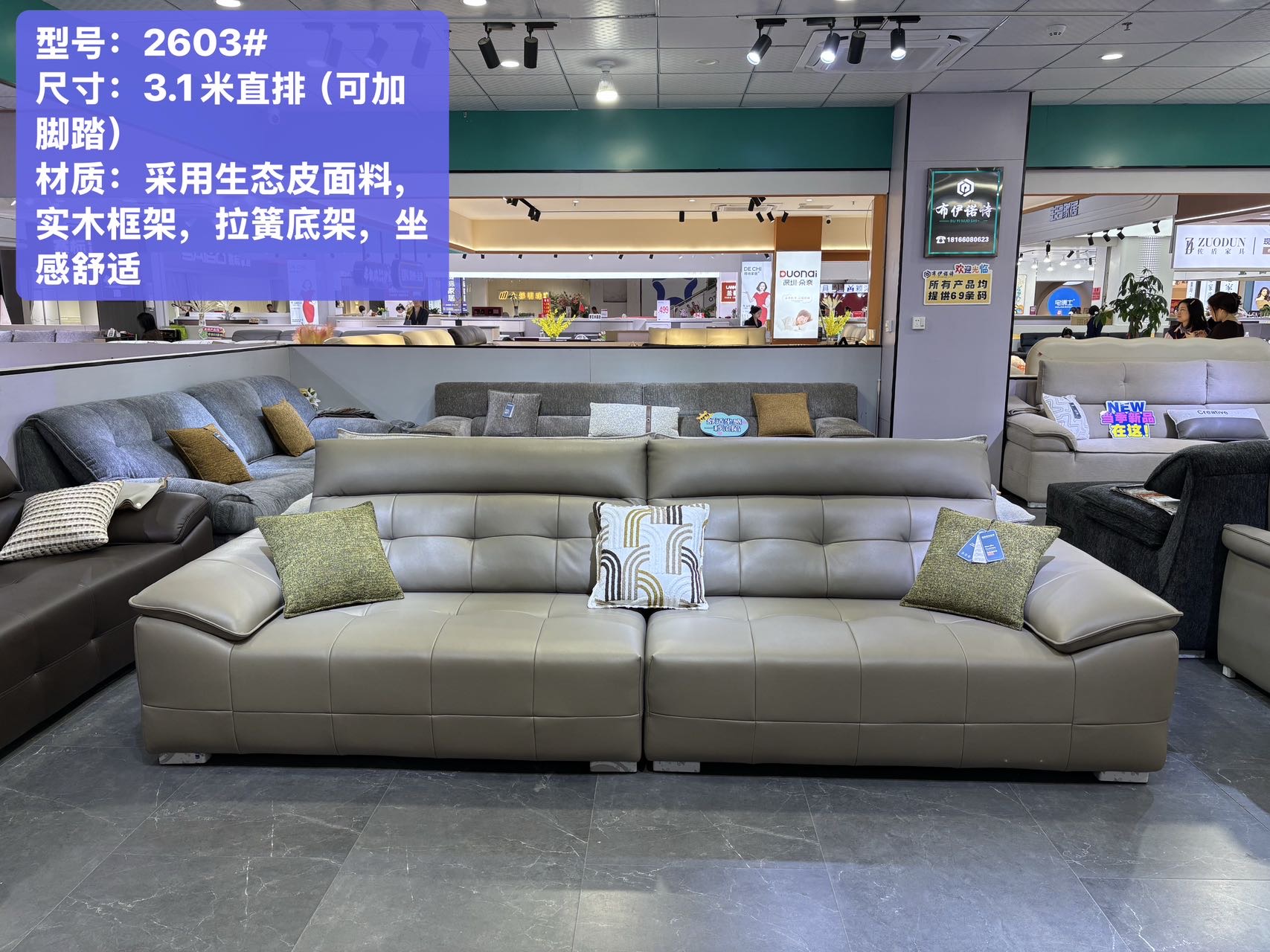 蚕丝底生态皮+实木框架+拉簧底架+高回弹海