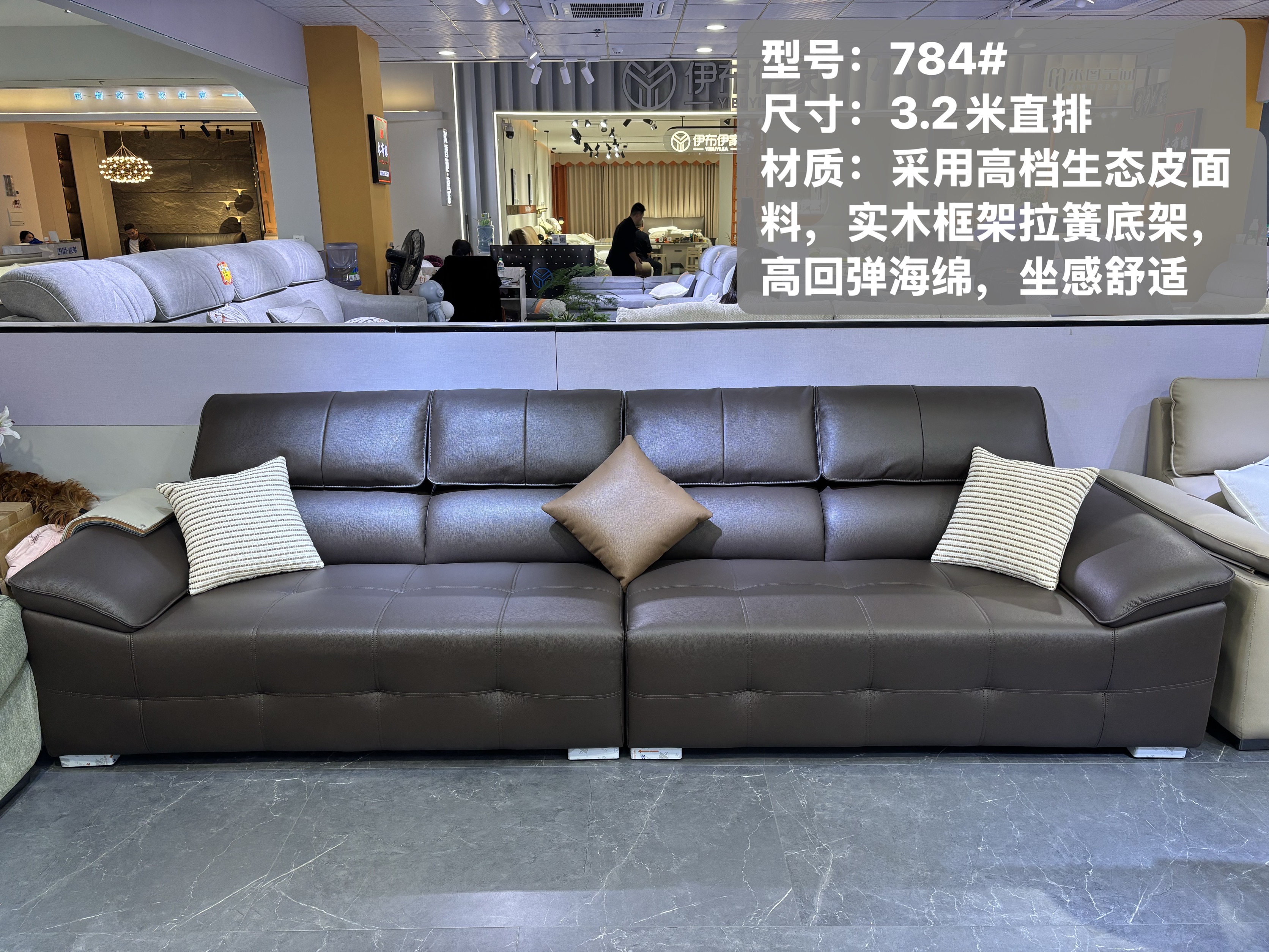 仿真皮面料+实木框架+拉簧底架+高回弹海绵
