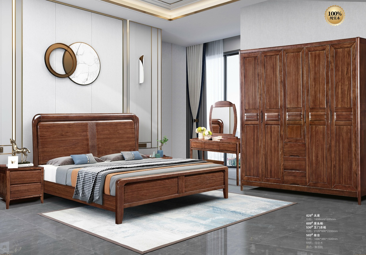 南城家具-新中式系列530#黑胡桃五门套房