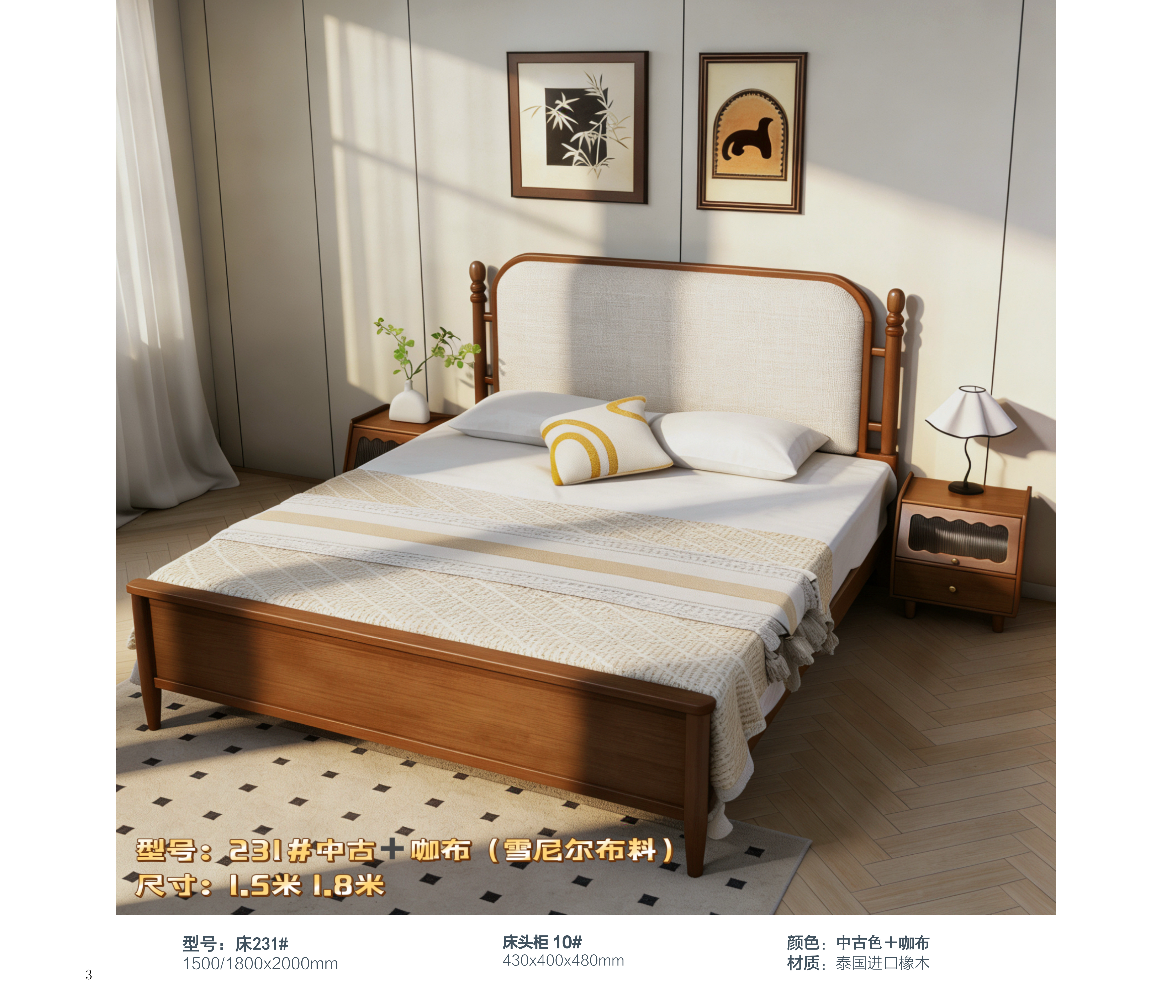 星海家具-231#中古风橡木软靠床