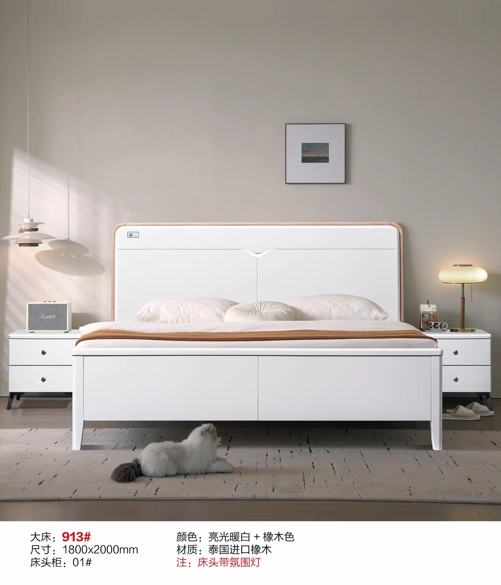 辉禾丰-橡木床913#(亮光暖白+橡木色)