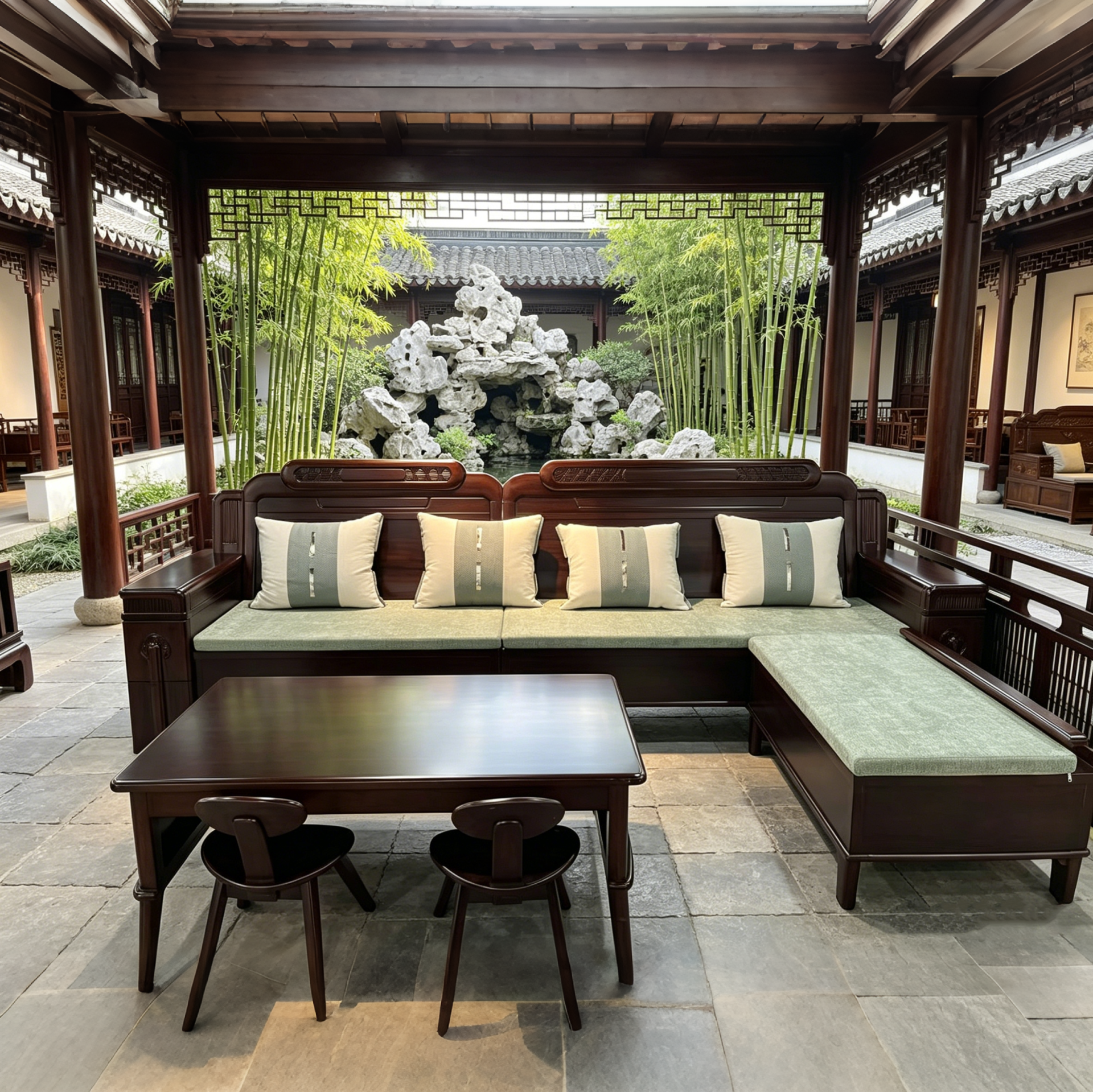 望京实木沙发-新中式乌金木沙发