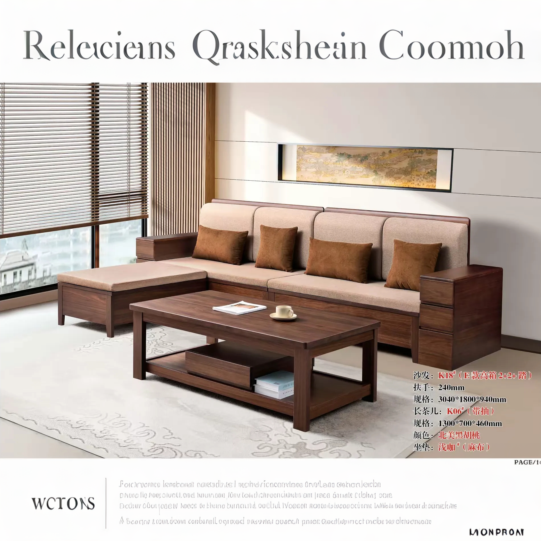 朗沐-K18高箱#新中式乌金木沙发