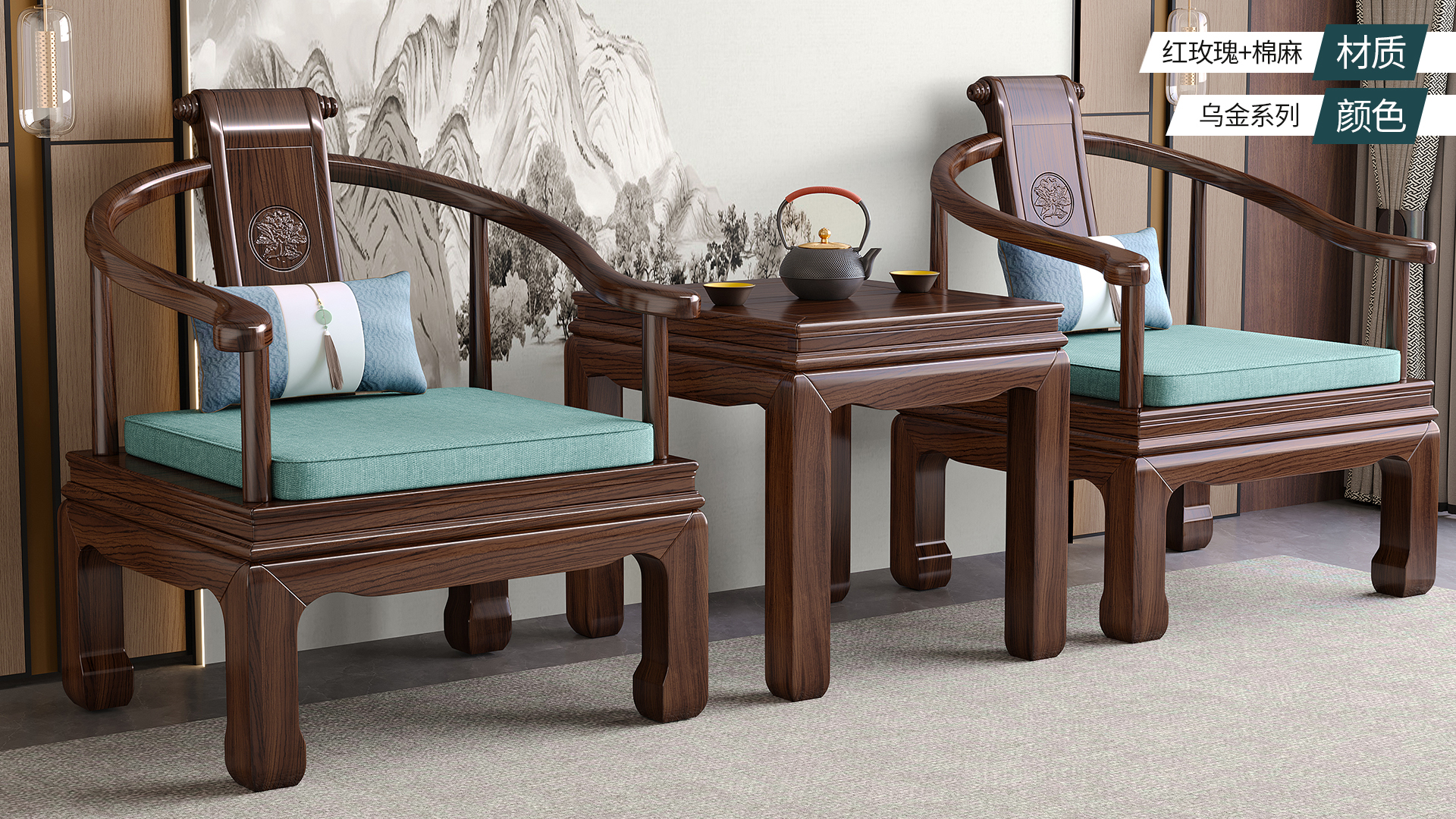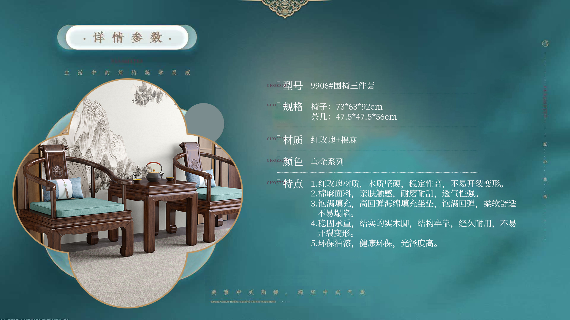 连乔-9906#新中式围椅三件套