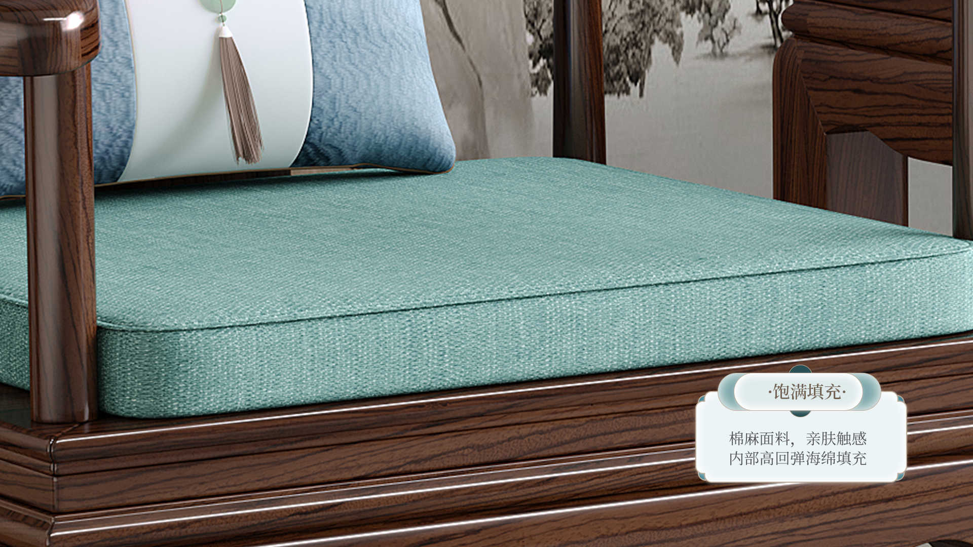 连乔-新中式乌金色客厅沙发套系