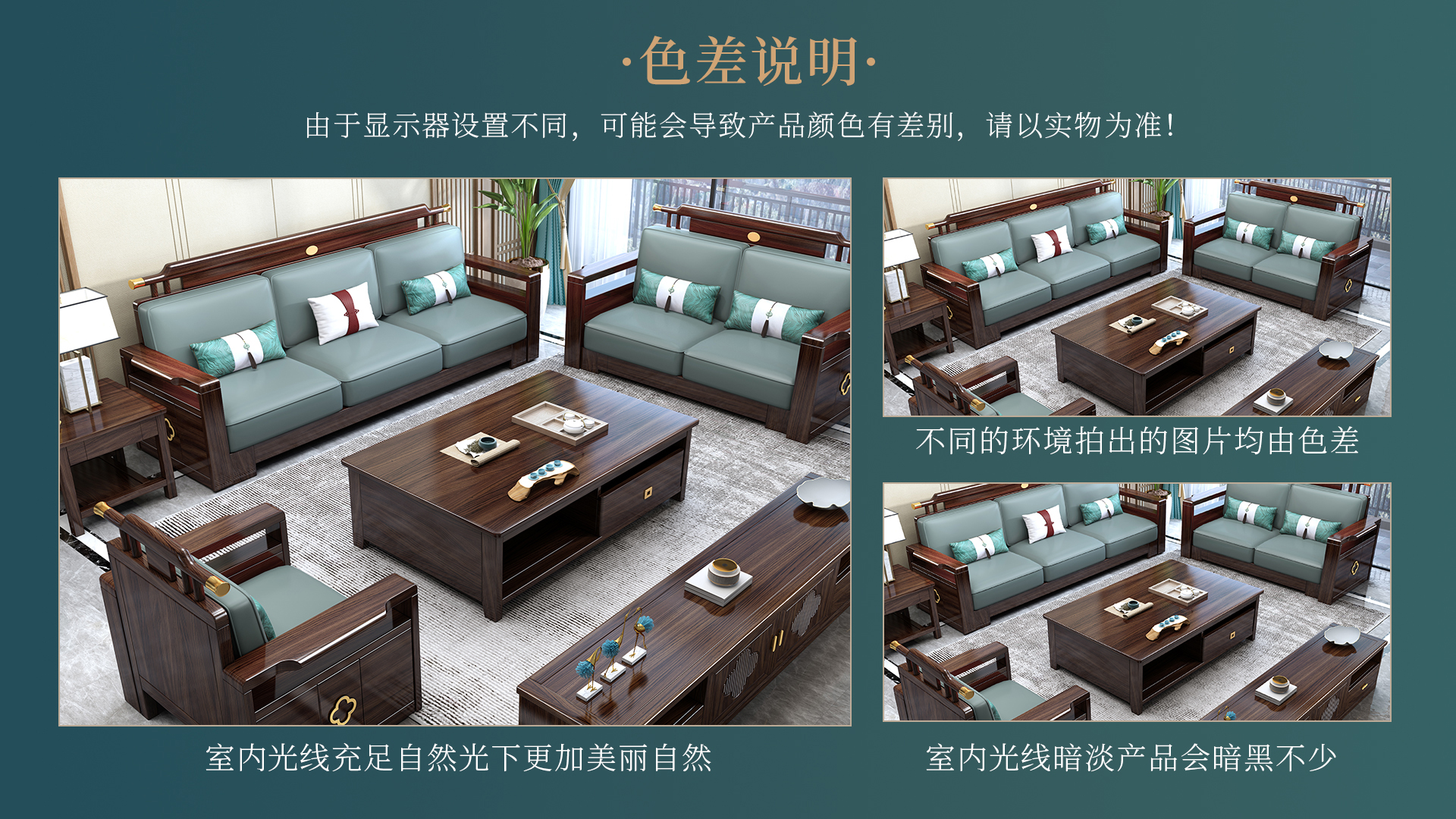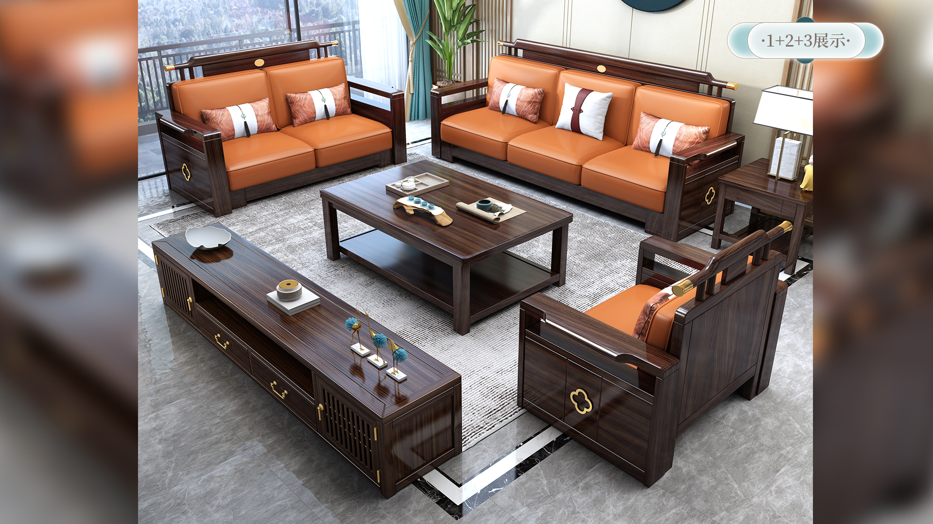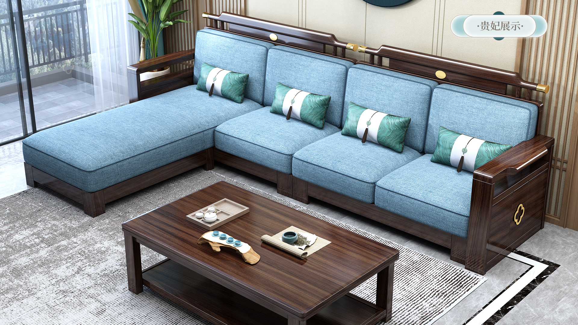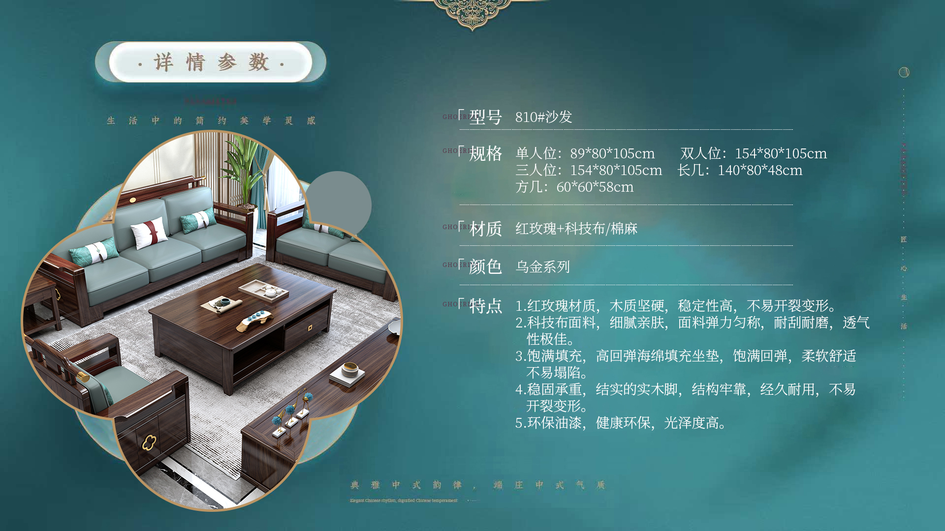 连乔-新中式乌金色客厅沙发套系