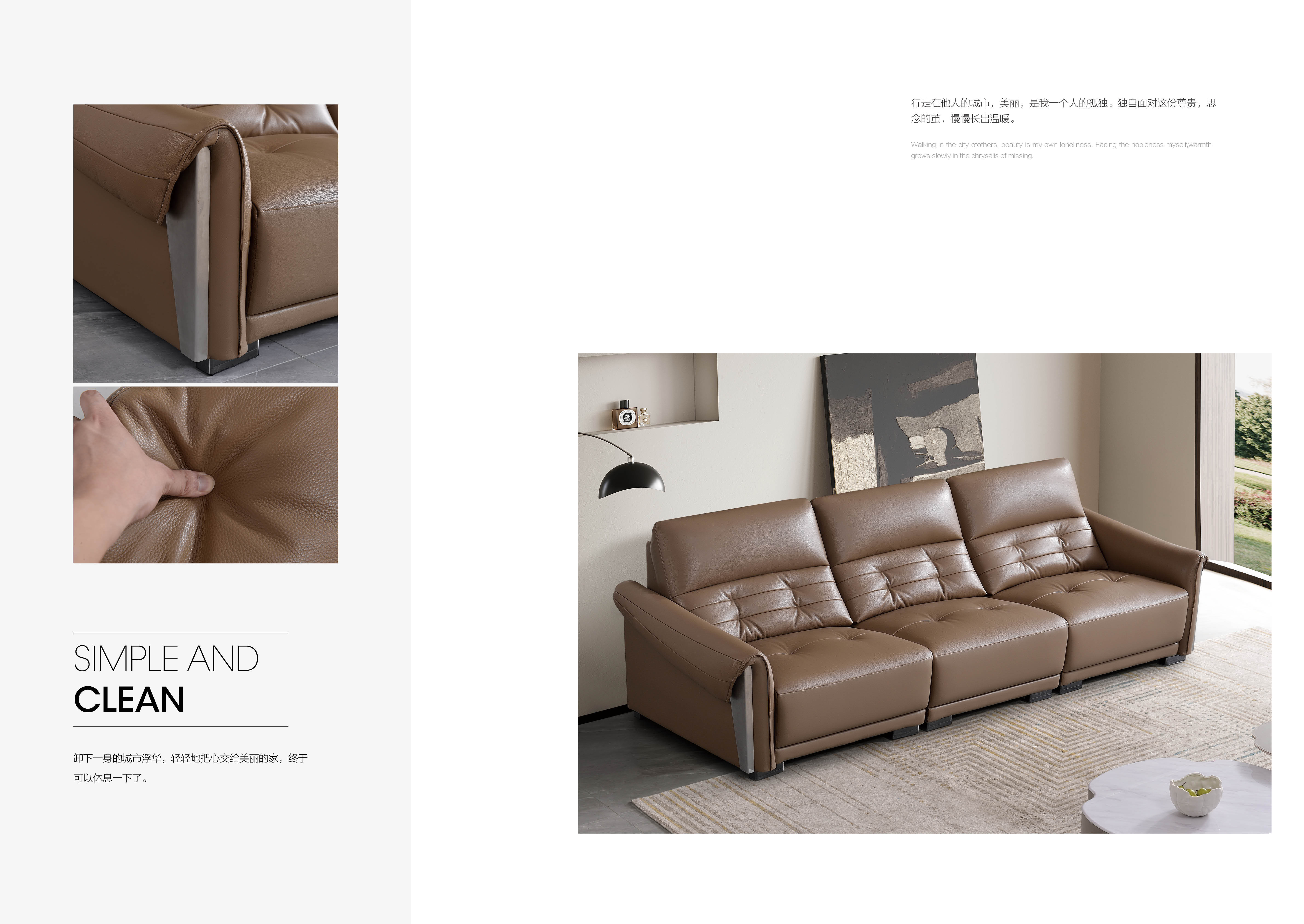 面料:超柔顶光半青头层牛皮; 海绵:高回弹高密度零粉海绵; 框架:进口落叶松