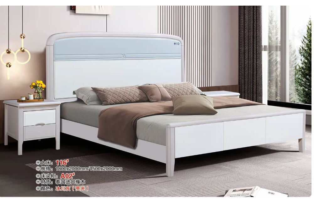 材质:泰国进口橡木 颜色:冰川灰(亮光) 床板:3公分杉木条板