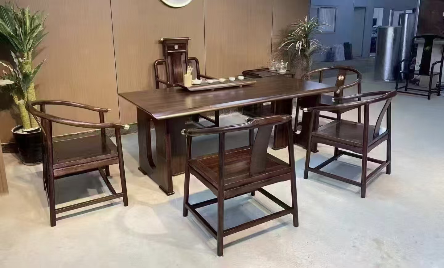 一桌五椅,茶水柜,养生壶,茶盘。