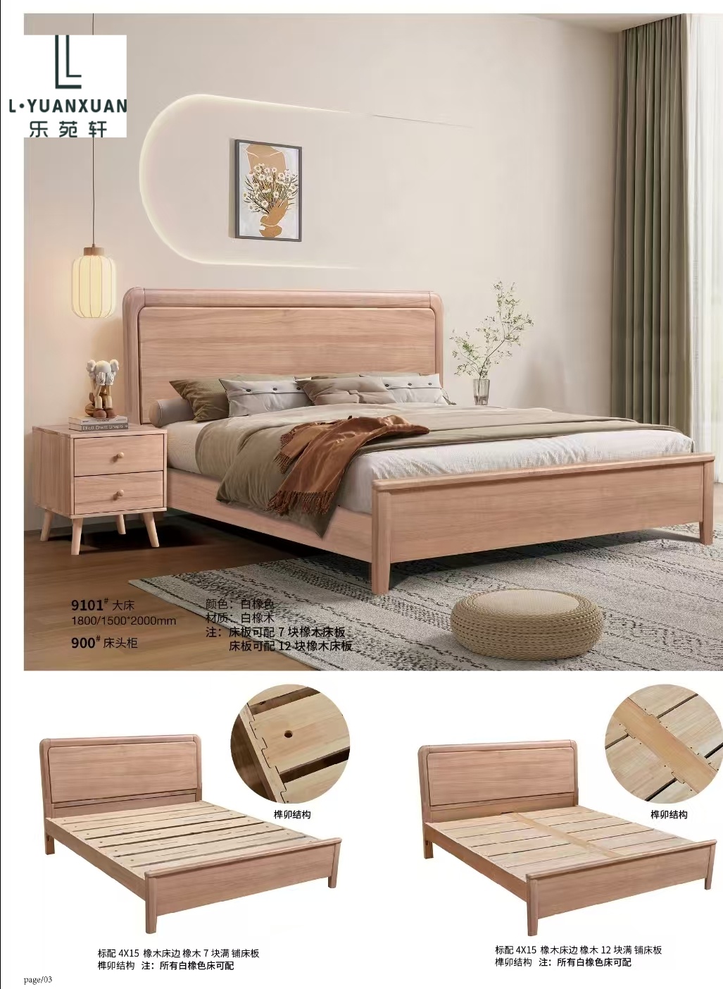 乐苑轩家具*-9101#白橡木床/9101#软靠床