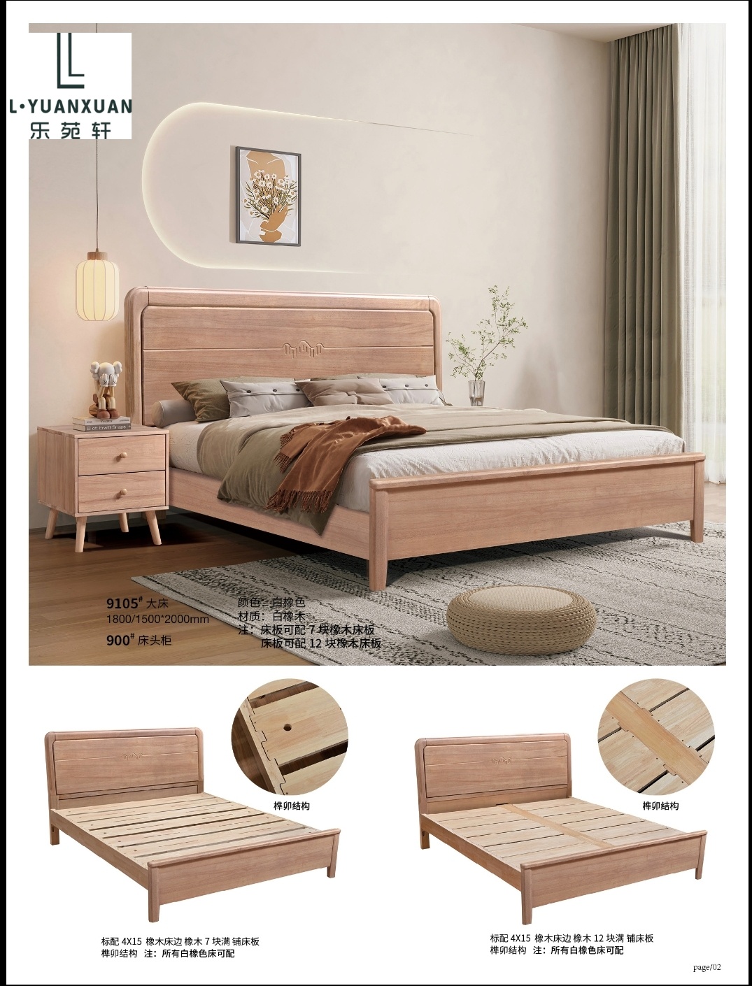 乐加 白橡木床