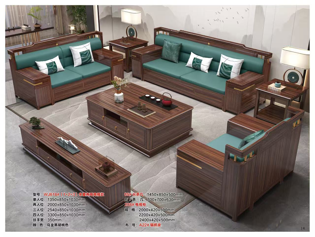 型号;鸿金海家具-WJ618#(1+2+3)冬夏俩用高箱款沙发(五件套)