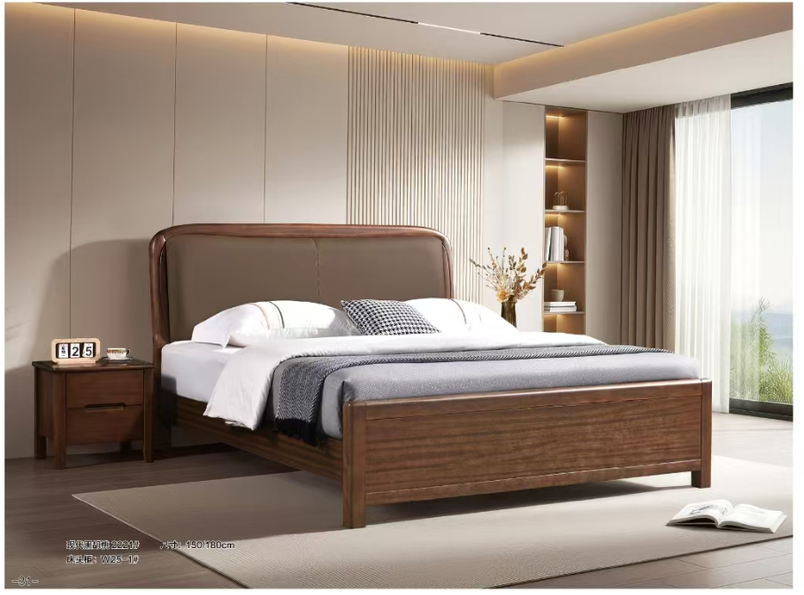 型号;戎一家具-2221/2201#现代黑胡桃床