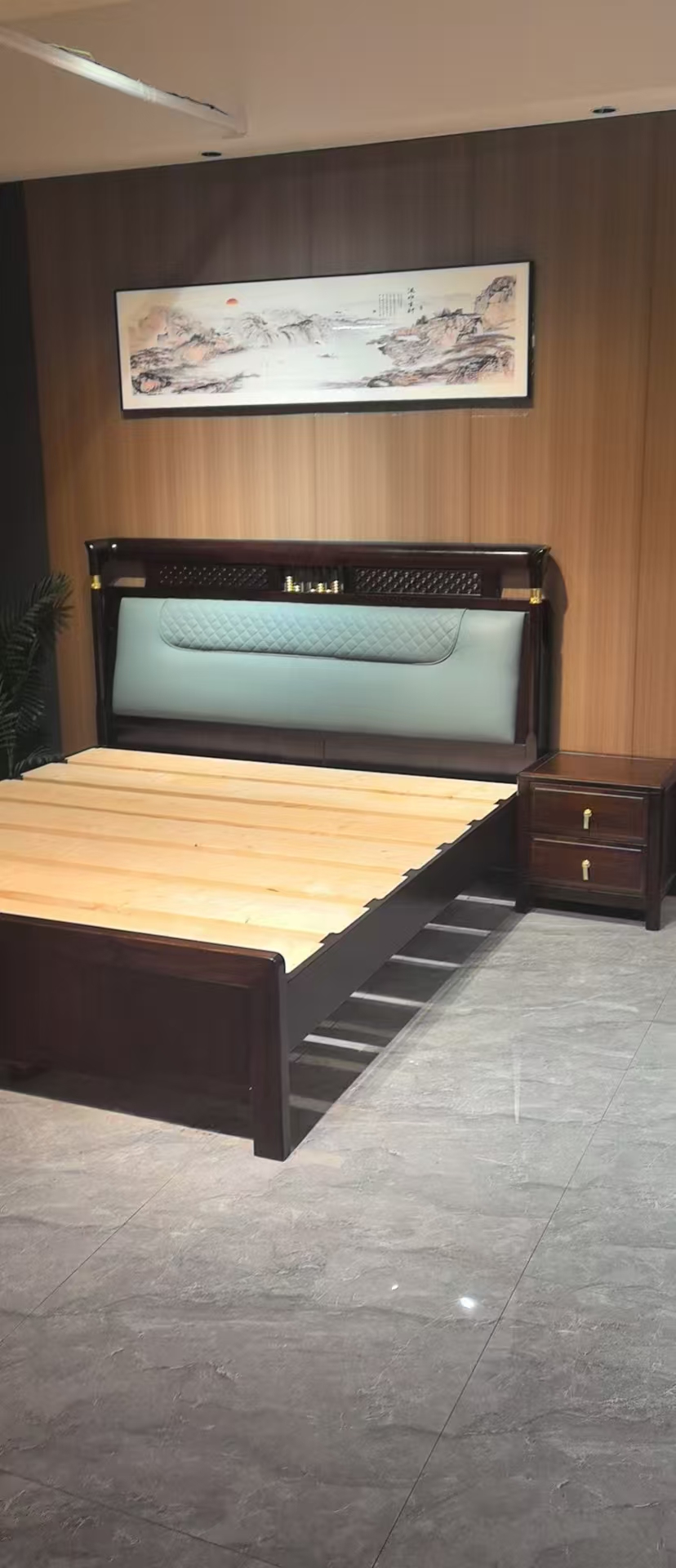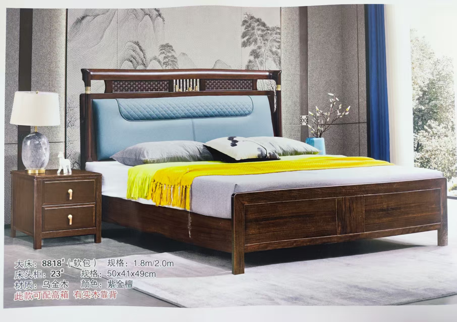 床头柜:23”材质:乌金木 颜色:紫金檀此款可配高箱 有实木靠背