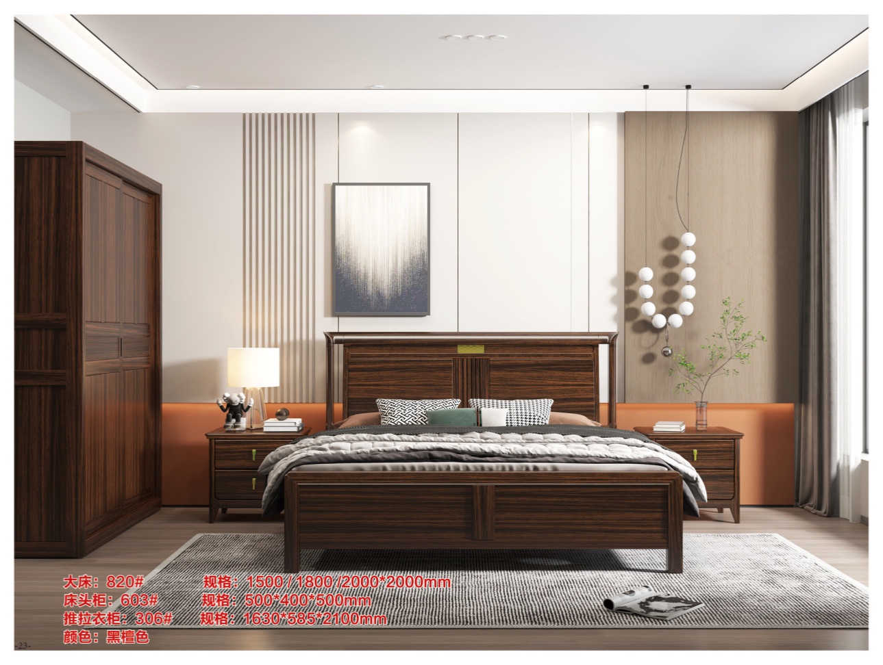 屿间-820#新中式乌金木床