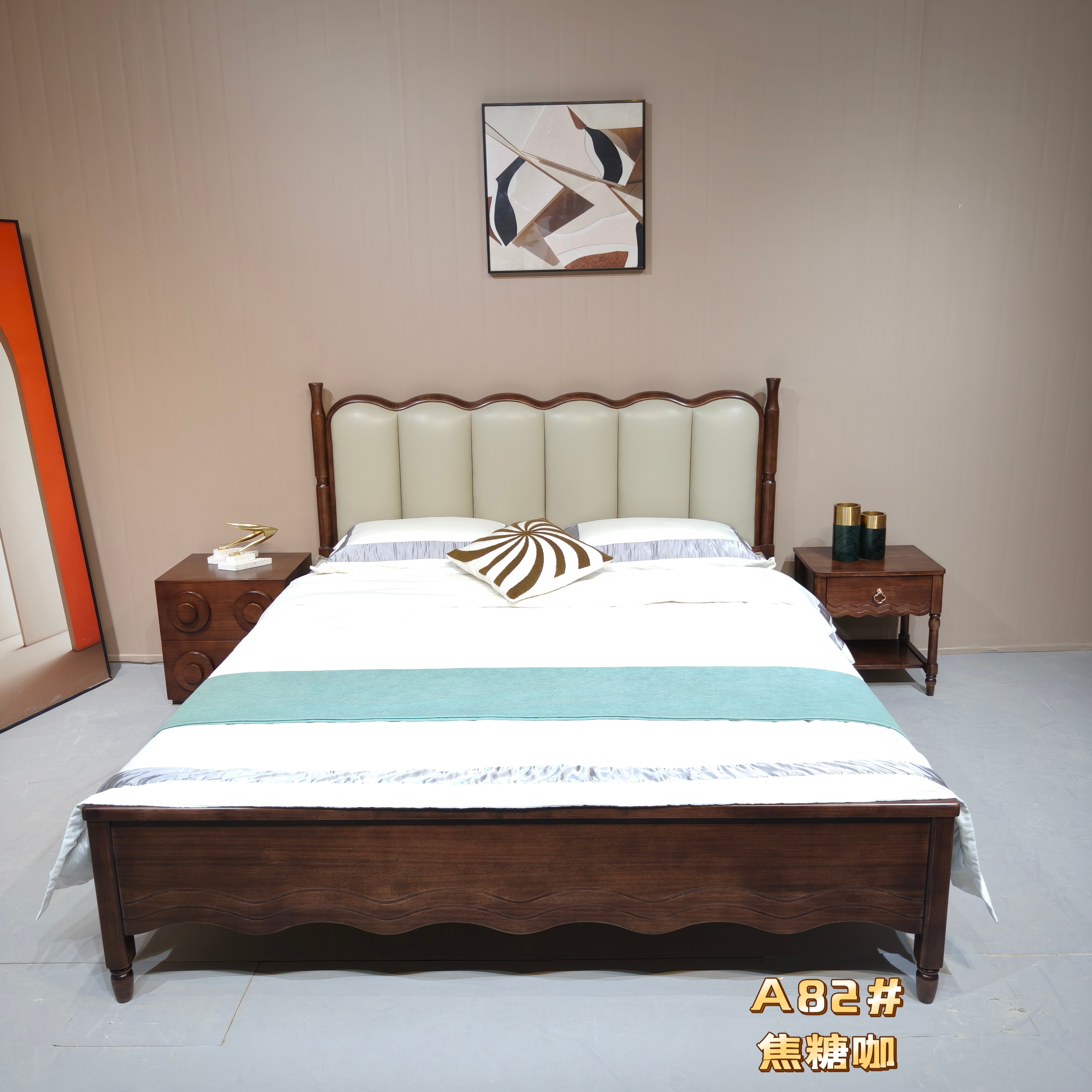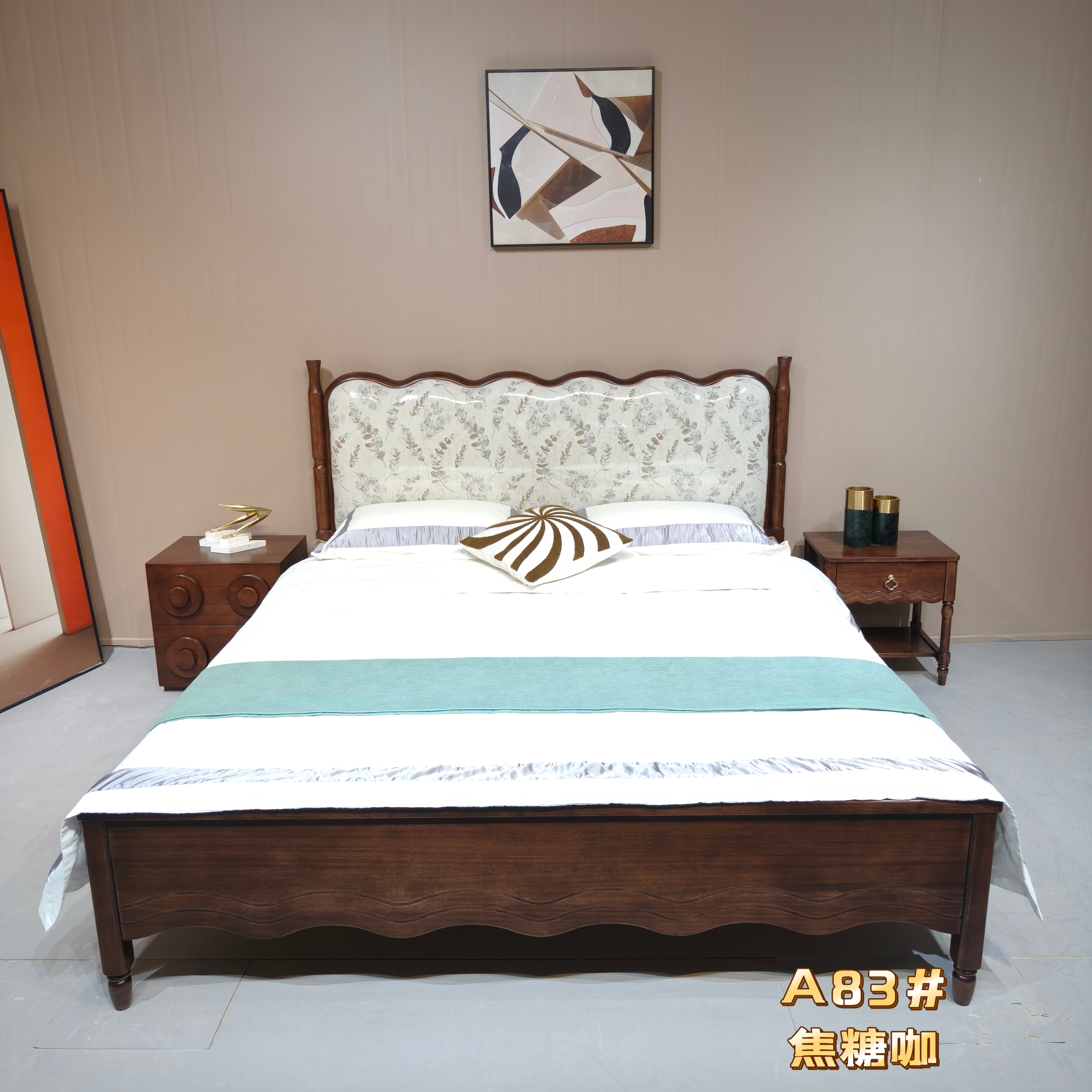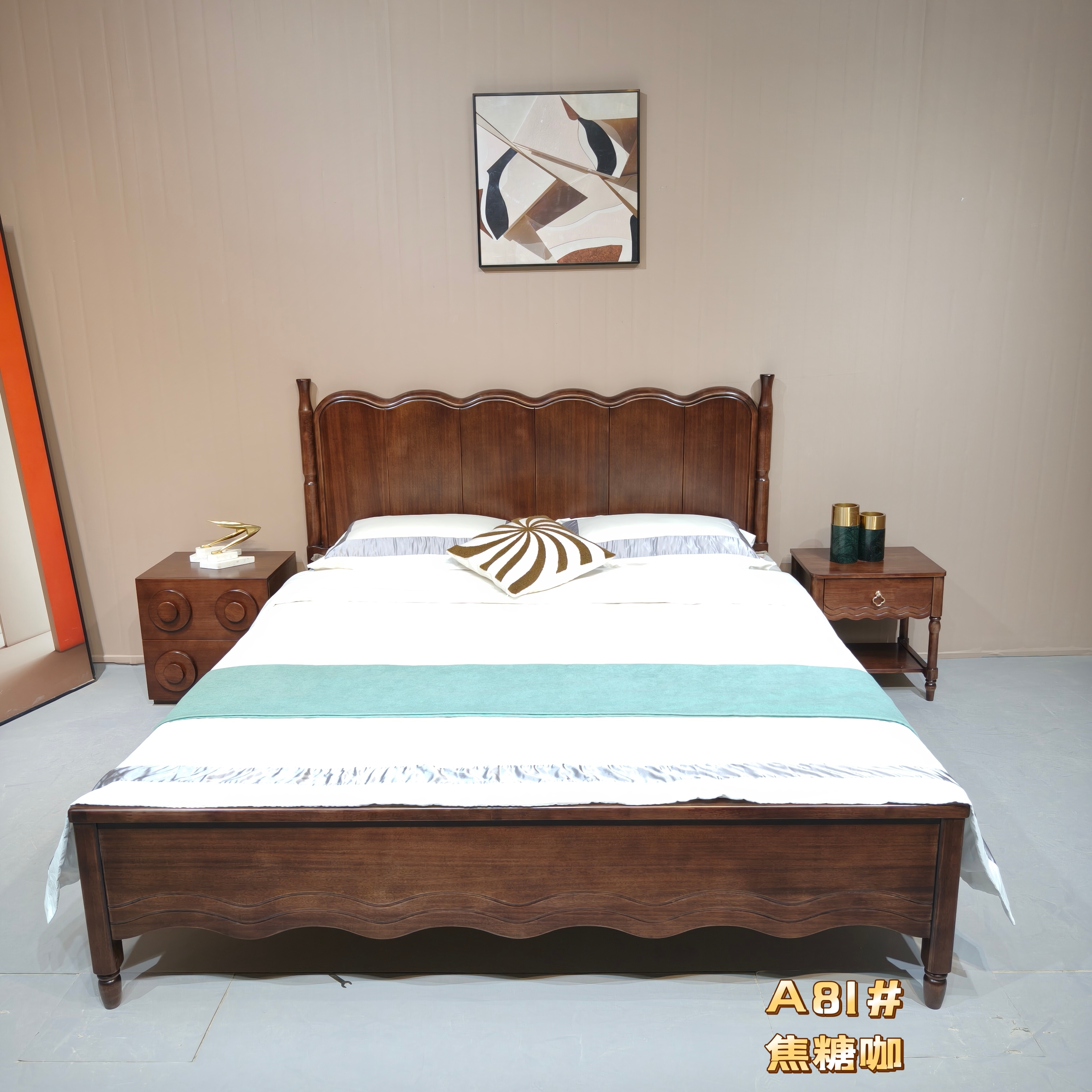 清简-A81/A82/A83#橡木中古风木床