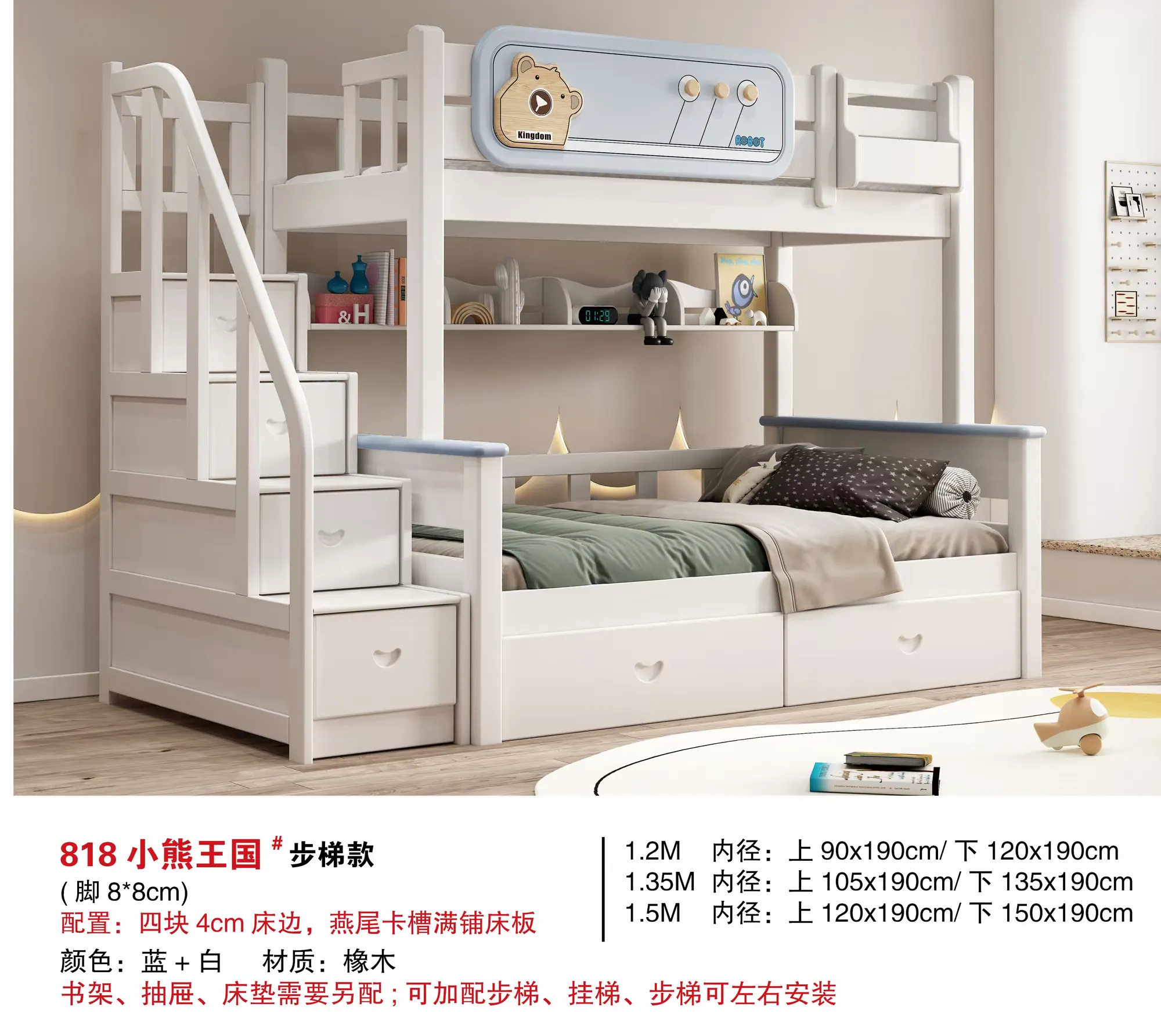 橡木 配置:四块4cm床边,燕尾卡槽满铺床板