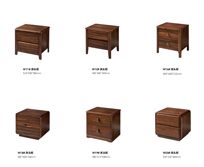 茵东-W11/W112/W16/W18/W19/W20黑胡桃床头柜