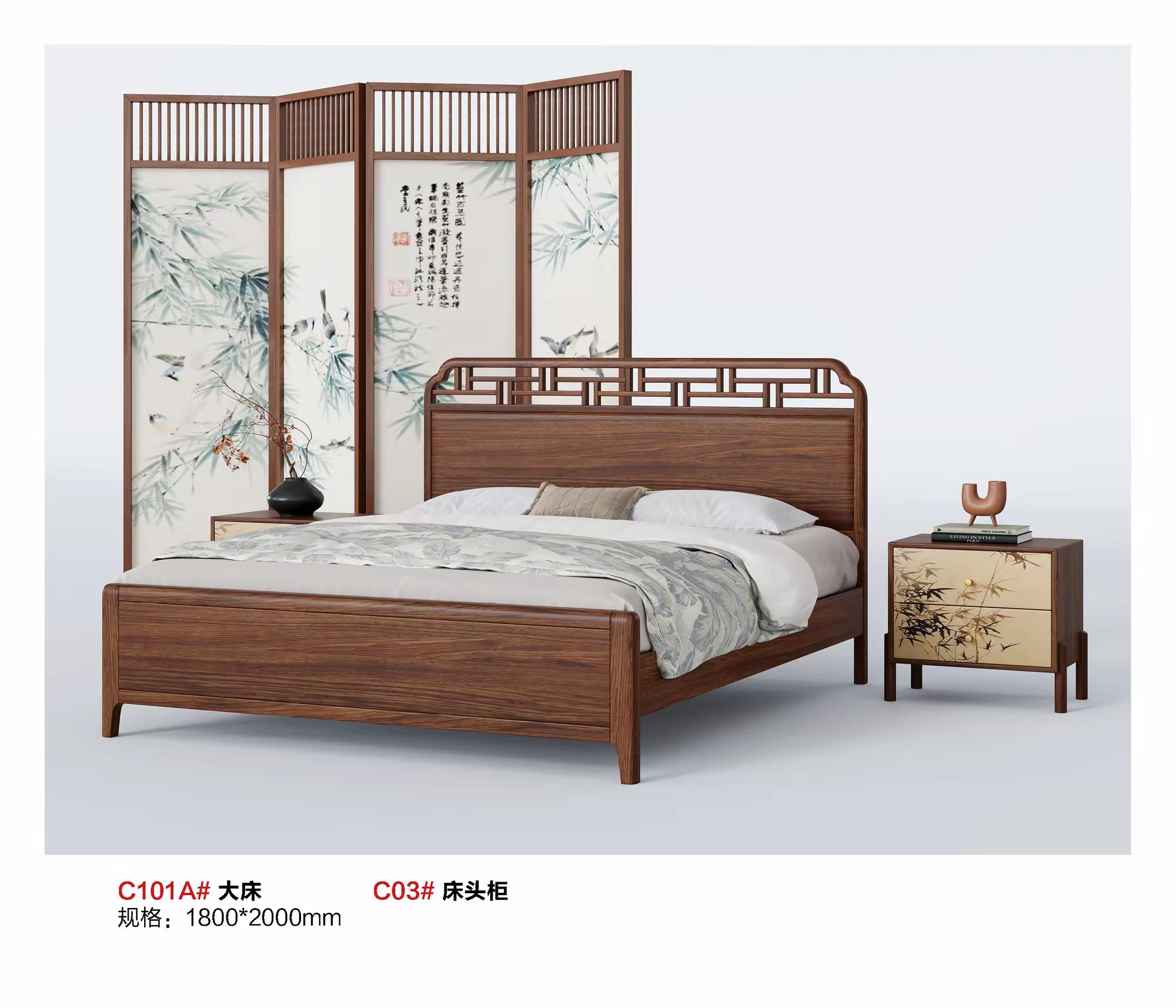 清沐木舍-C101A#宋氏美学胡桃木床