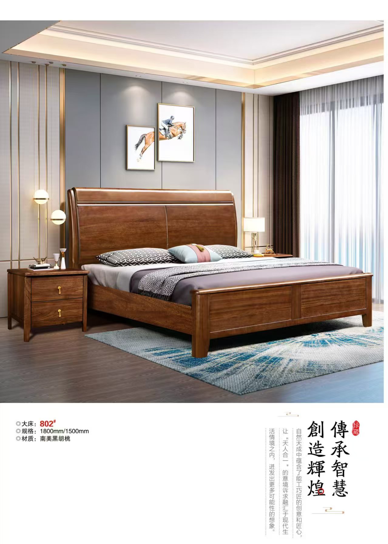 才原-802#北美黑胡桃木床
