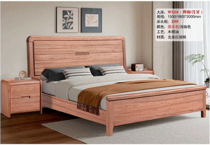 匠朴居-W55#(榫卯/月牙)北美红胡桃床