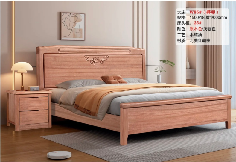 匠朴居-W95#(榫卯)北美红胡桃床