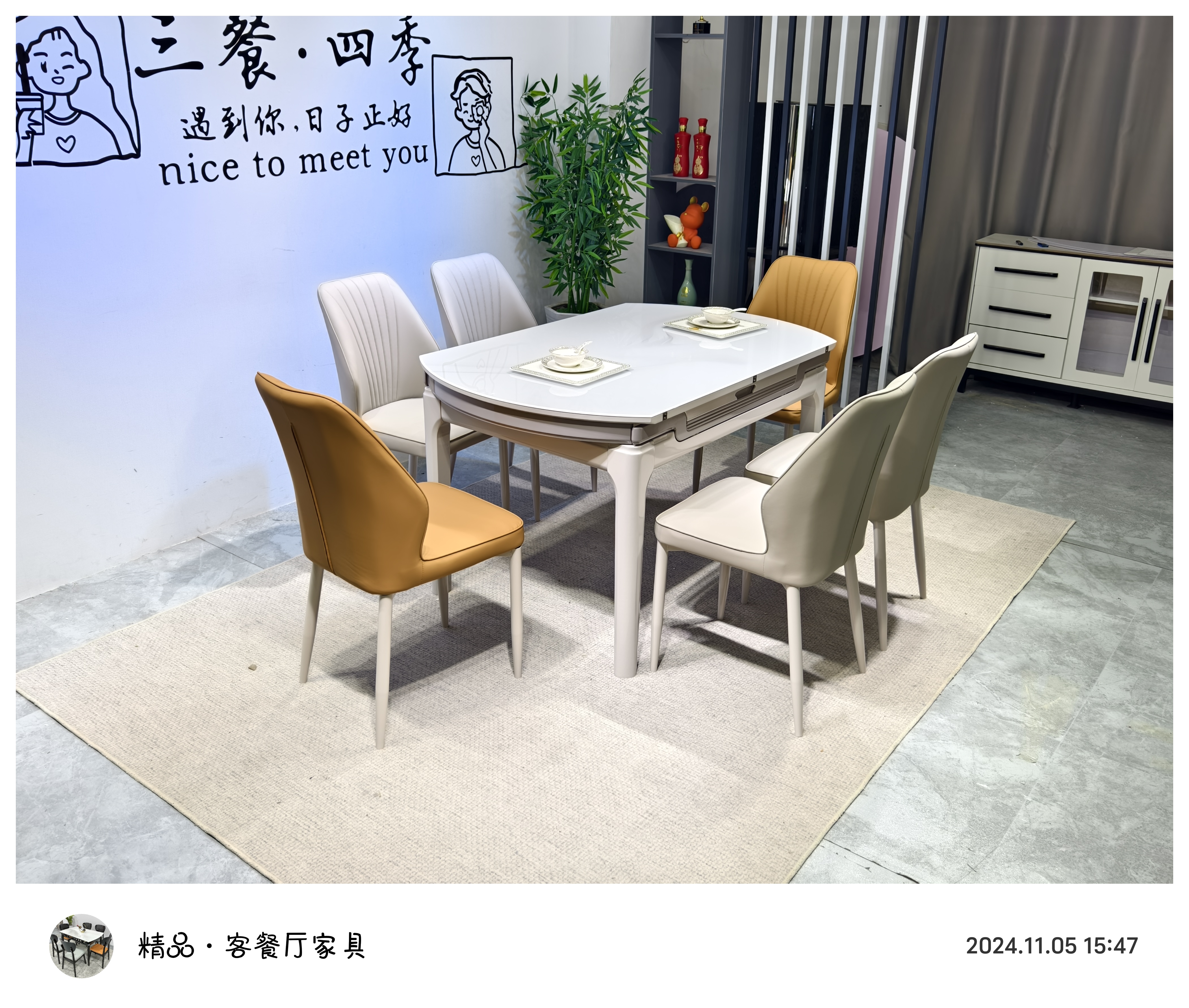 贴好玉晶石面、自吸钢轨道、橡木框架、 橡木脚,椅子碳素钢脚、猫爪皮软包